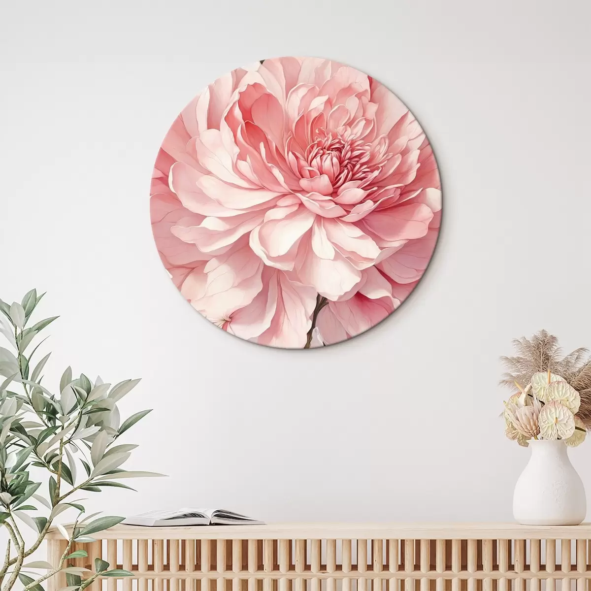 Quadri rotondi Peonia rosa in primo piano con luci soffuse r44891