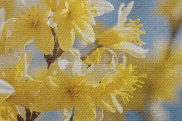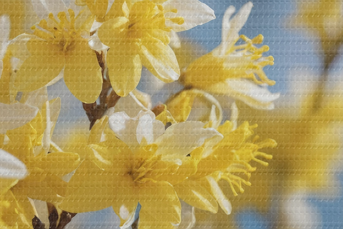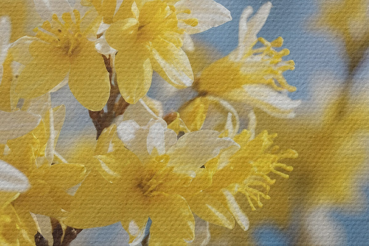 Immagine Fiori gialli su sfondo blu con messa a fuoco morbida Nr r44894