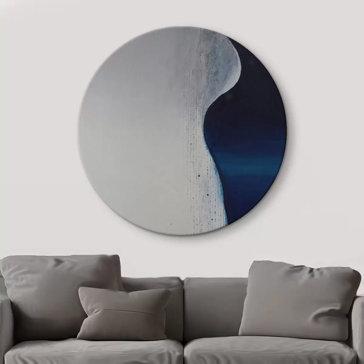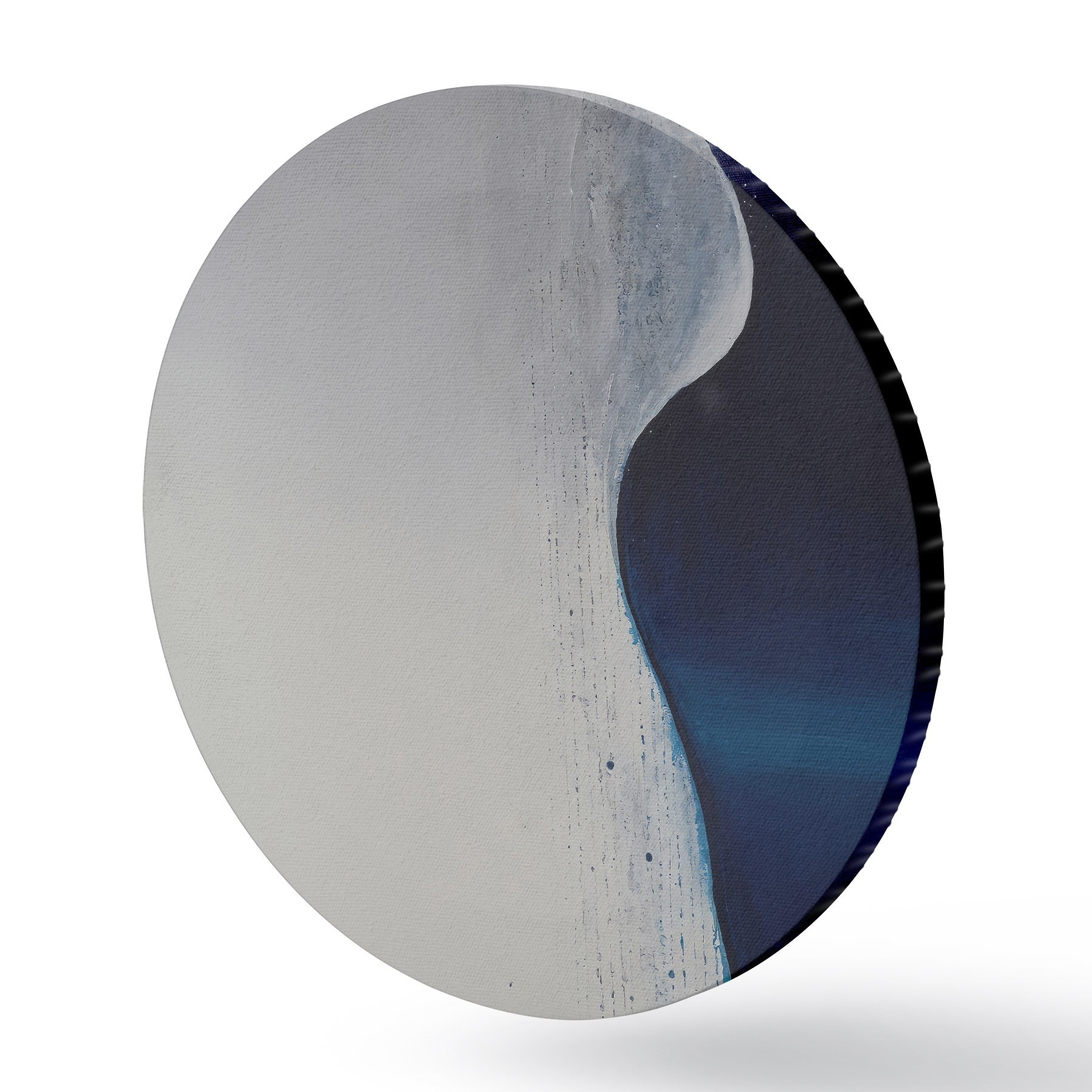 Quadri rotondi Astrazione a forma di onda con tavolozza bianca e blu tavolozza blu r44895