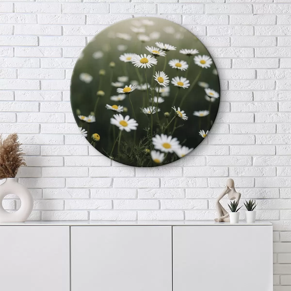 Quadri rotondi Campo di margherite con sfondo verde sfocato r44898