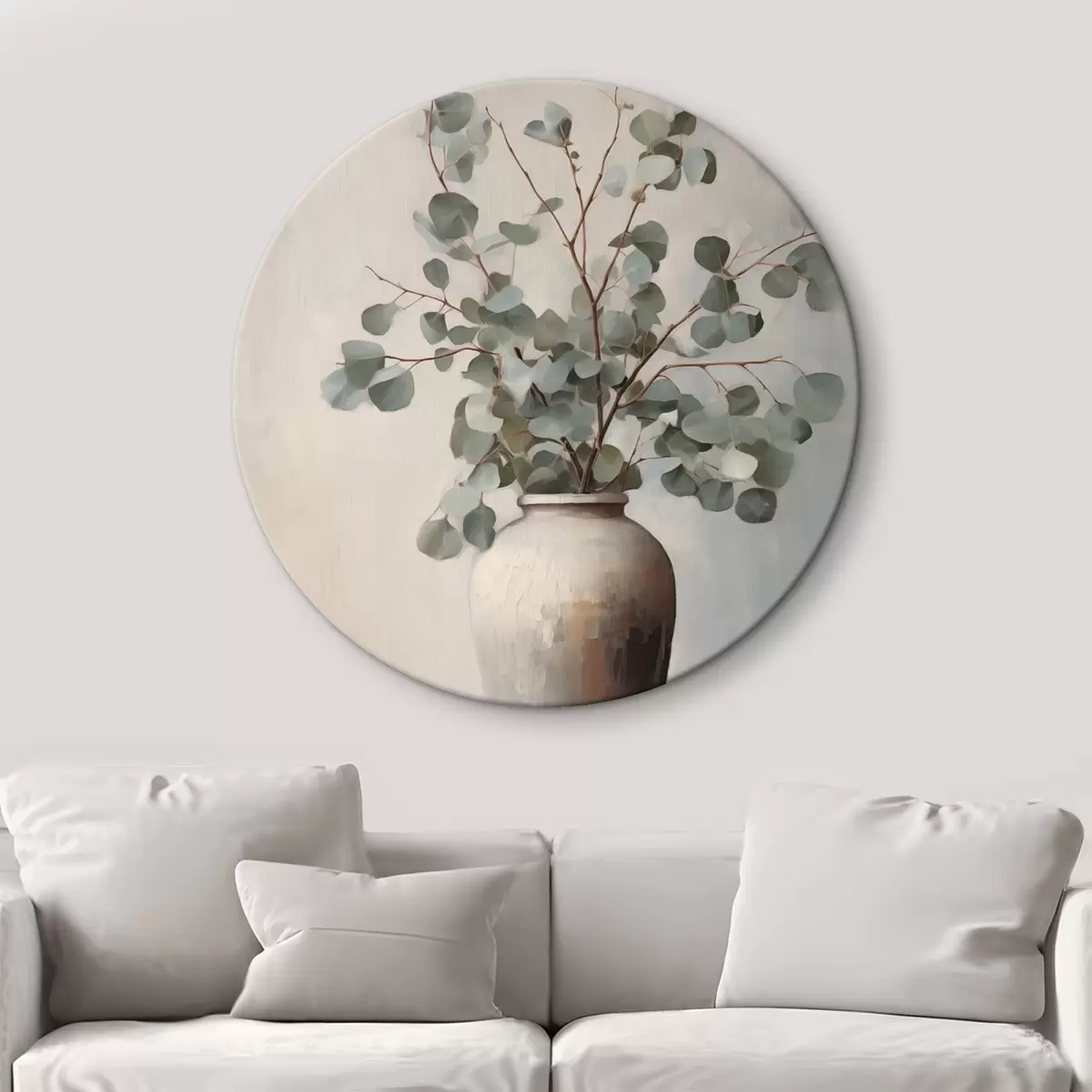 Quadri rotondi Rami di eucalipto in un vaso di argilla r44906