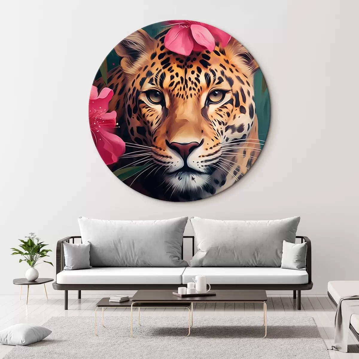Quadri rotondi Leopardo tra i fiori tropicali r44918