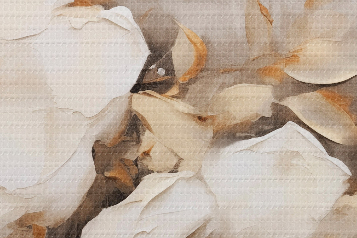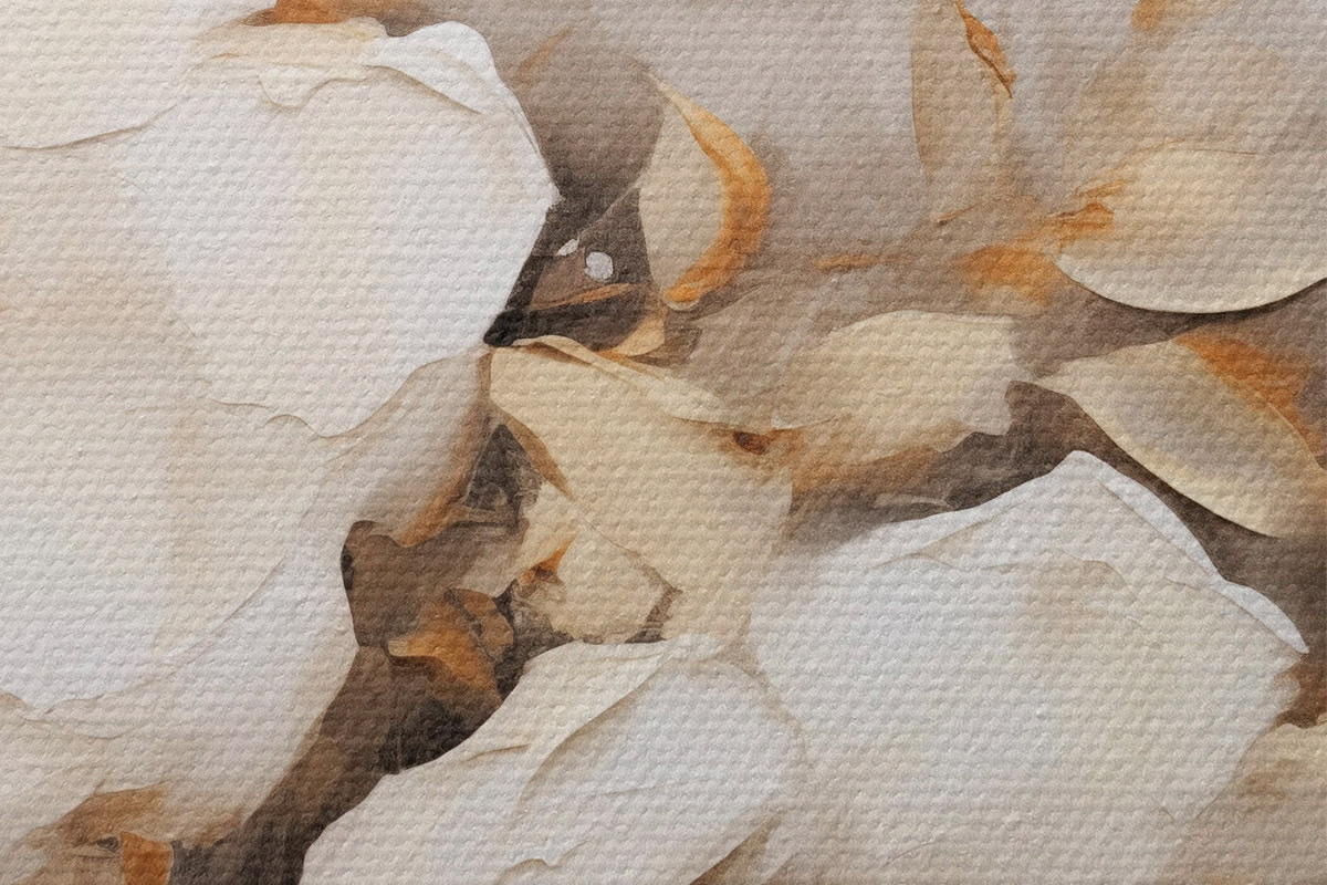 Immagine Fiori bianchi con foglie marroni su sfondo beige, imitazione di pittura a olio, composizione floreale, arte botanica Nr r44922