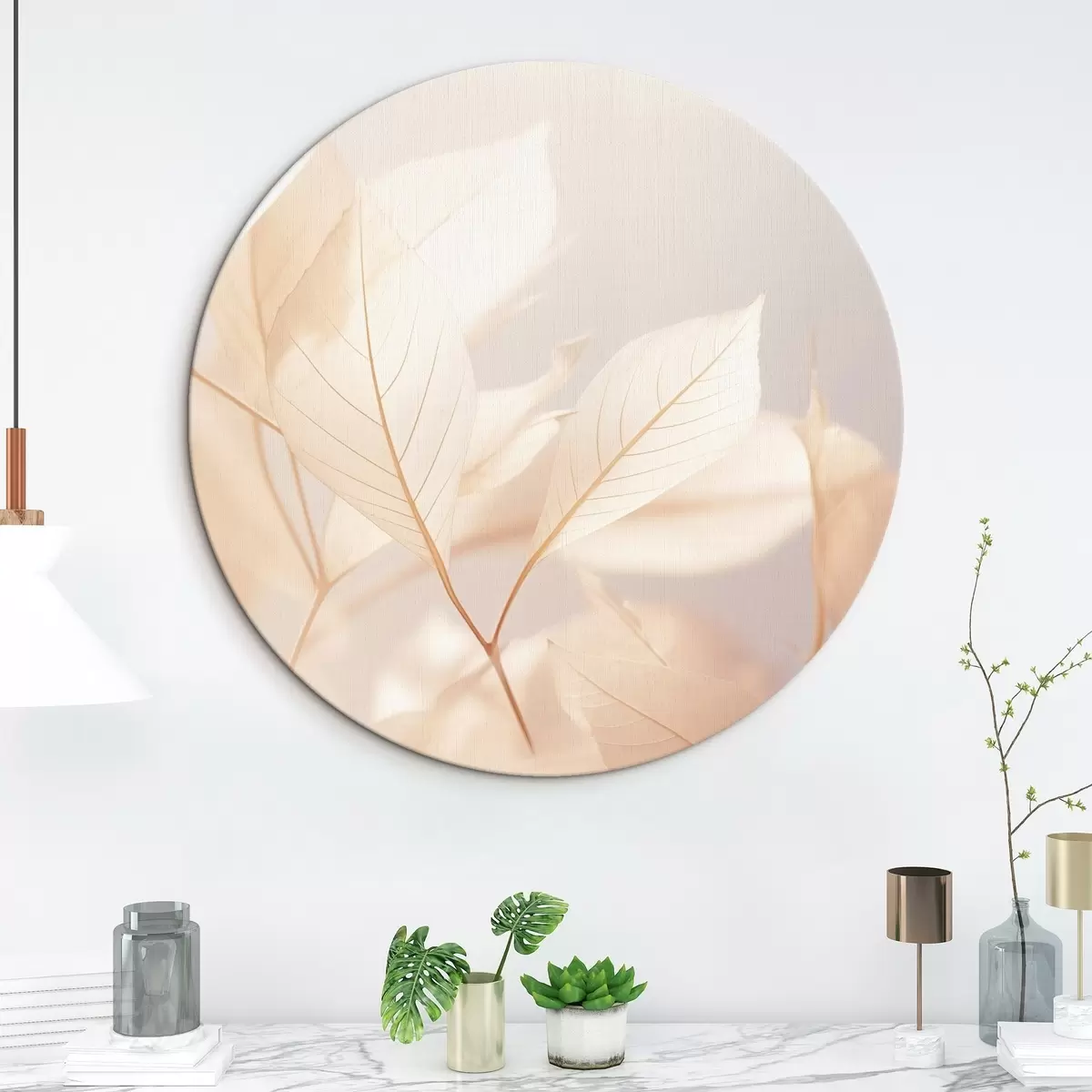 Quadri rotondi Foglie traslucide con intricati motivi di venature, tavolozza di colori pastello tenui, illuminazione eterea, composizione minimalista r44928