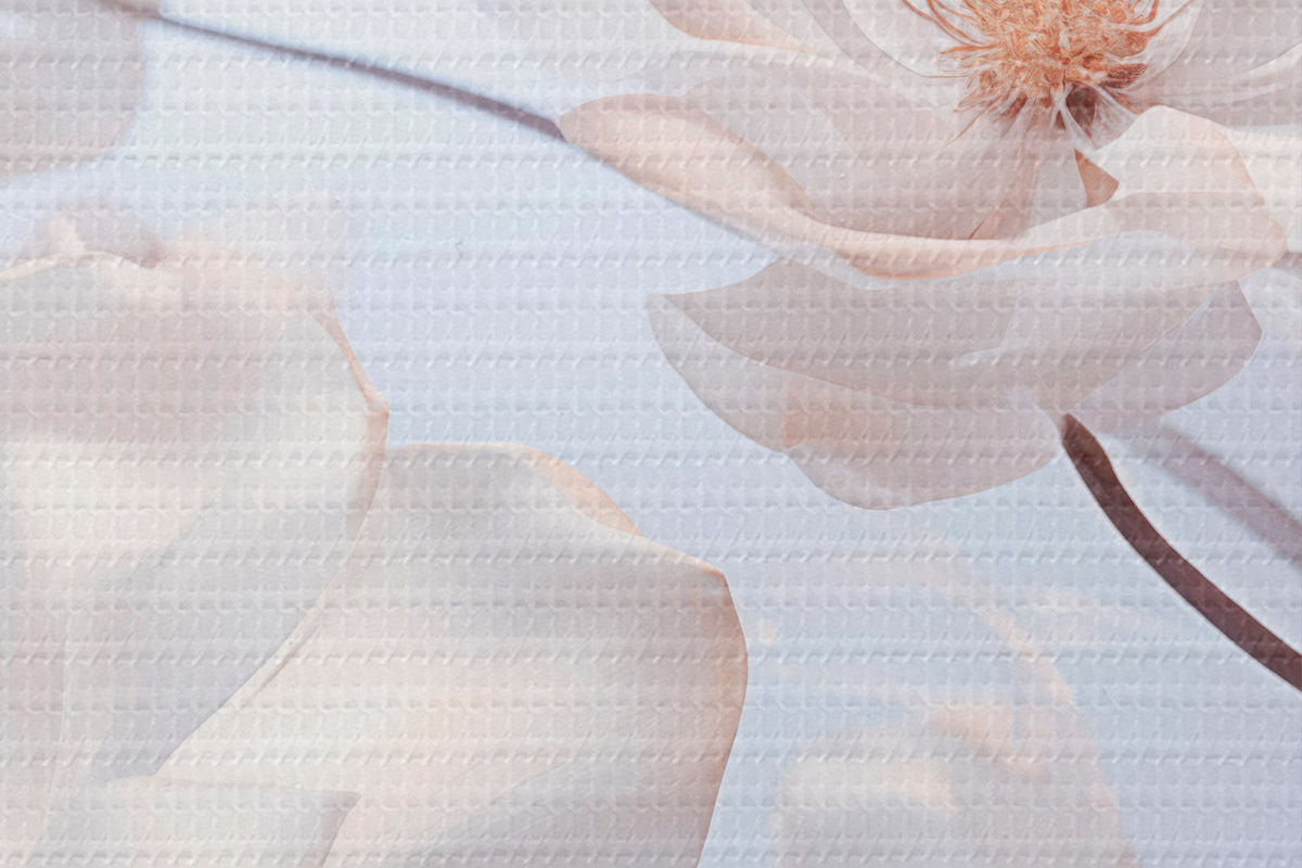 Immagine Fiori bianchi con petali traslucidi, sfondo azzurro tenue, elegante, romantico, delicato, sognante Nr r44931