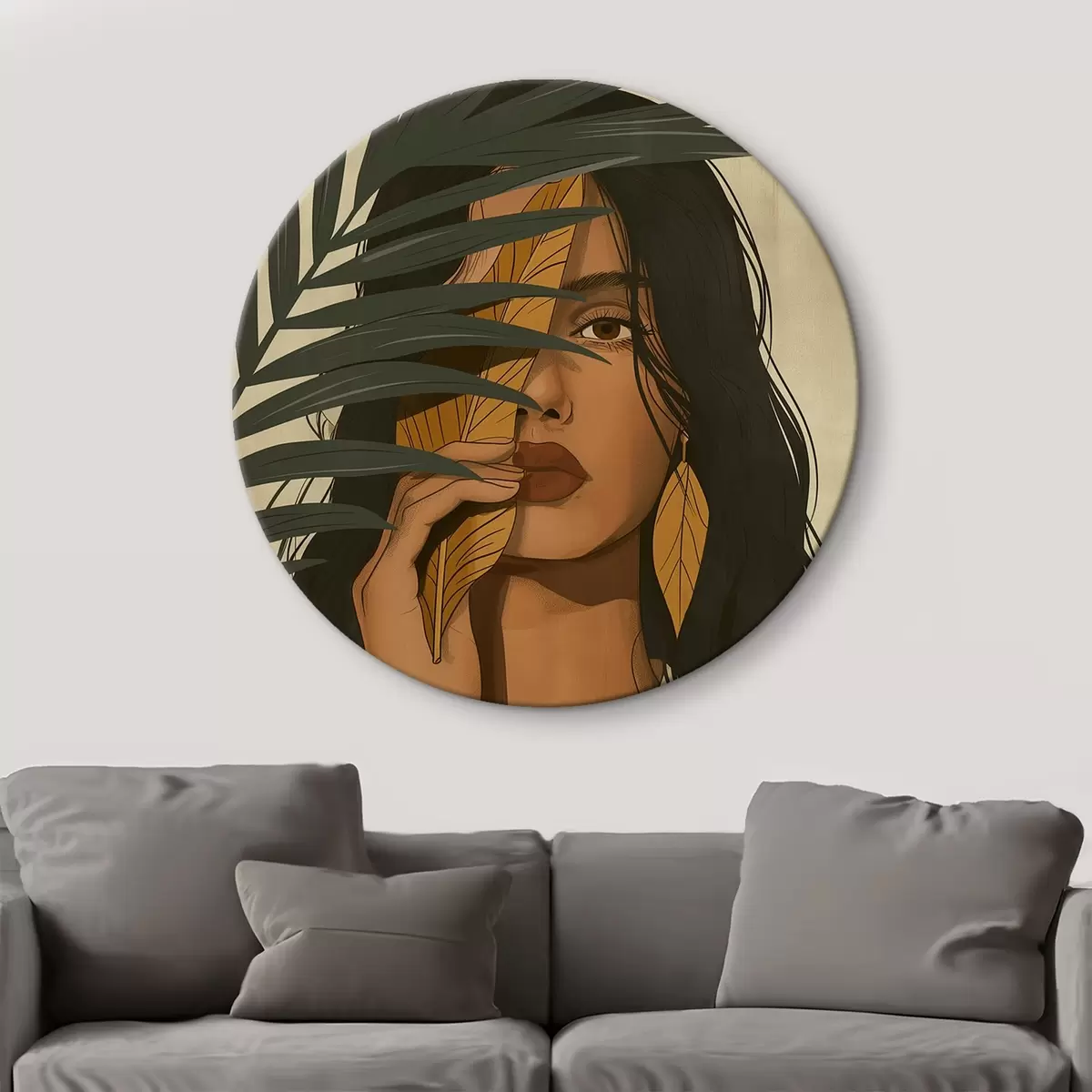 Quadri rotondi Volto nascosto dietro le foglie r44960