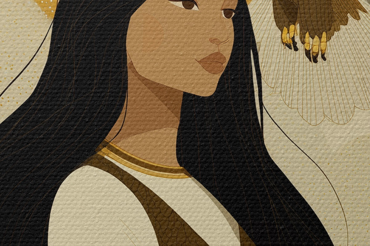 Immagine Donna con aquila in volo, stile tribale, colori beige Nr r44977