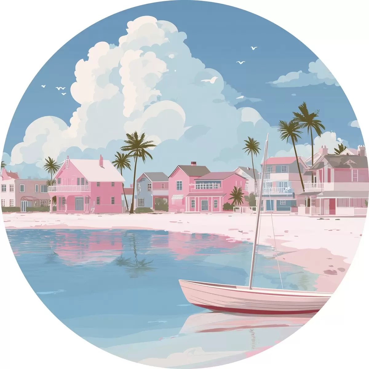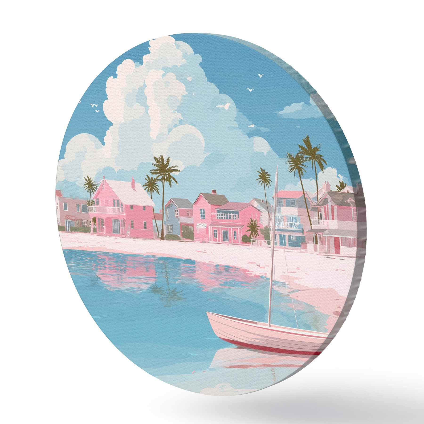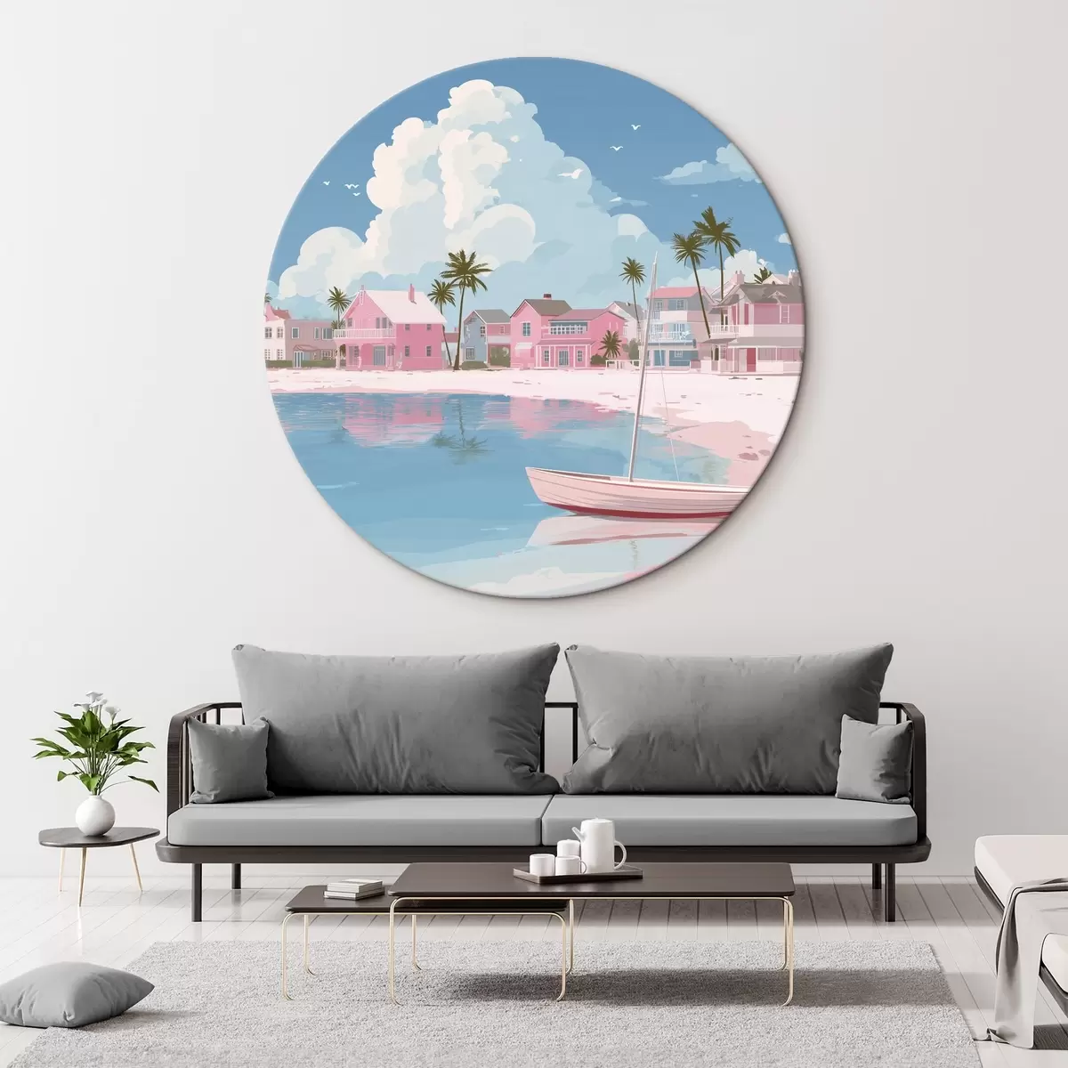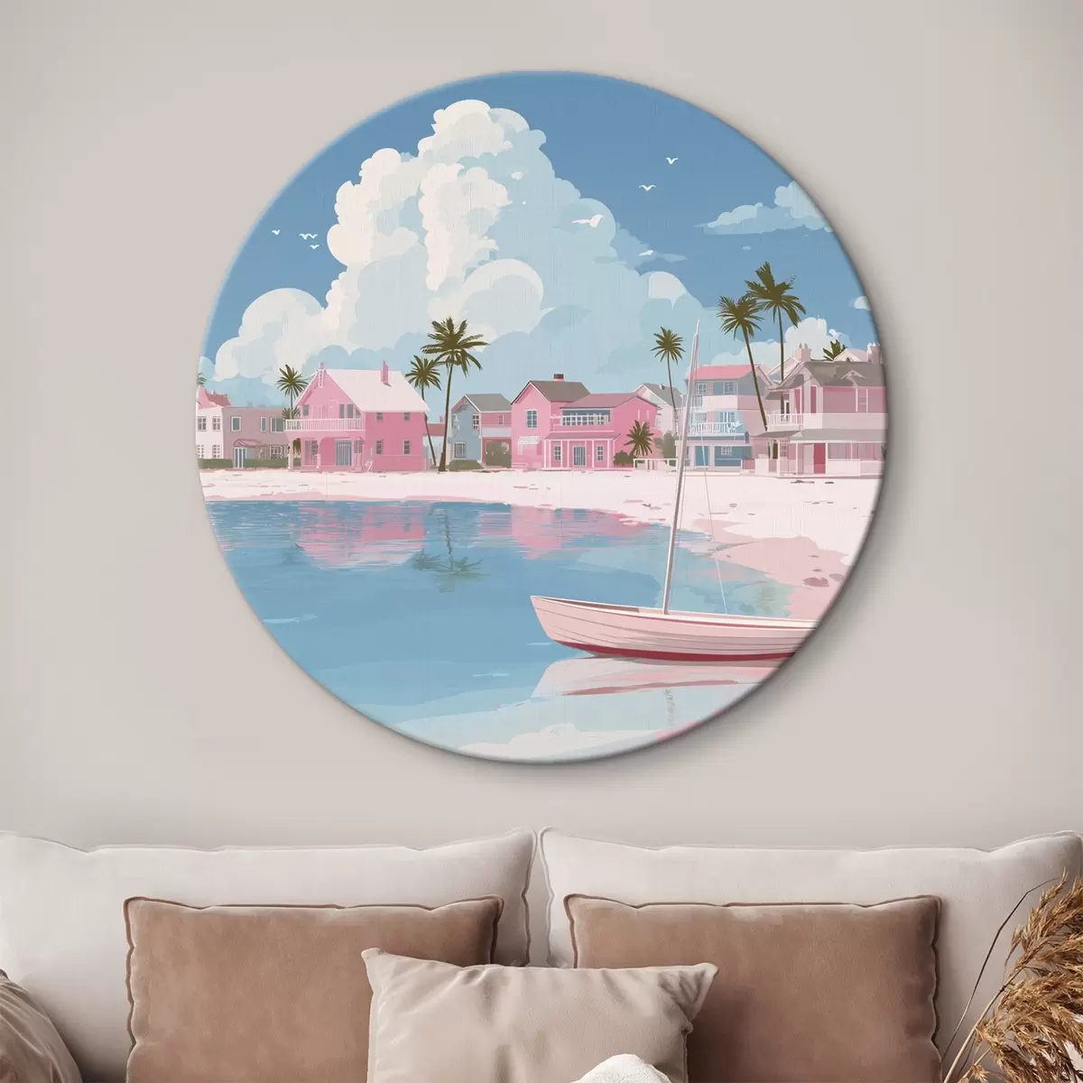 Quadri rotondi Spiaggia estiva rosa colorata r44985