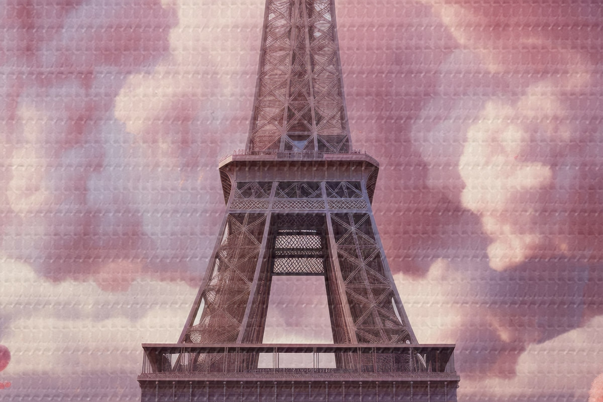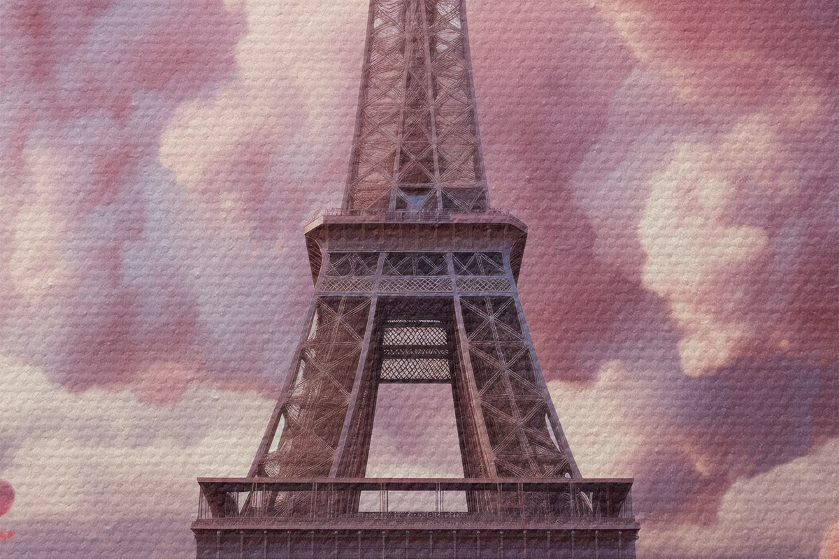 Immagine Torre Eiffel tra le nuvole rosa in stile fantasy Nr r45036