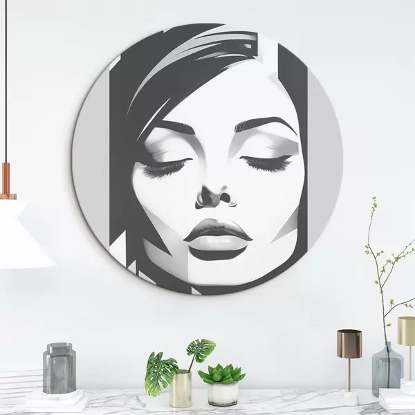 Quadri rotondi Volto in bianco e nero con occhi chiusi r45075