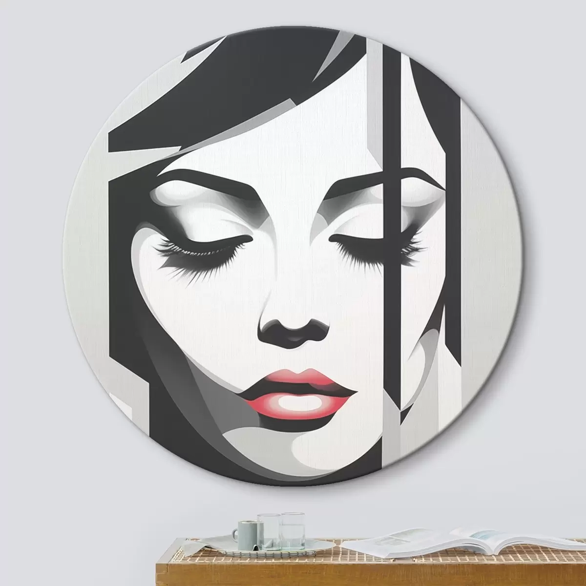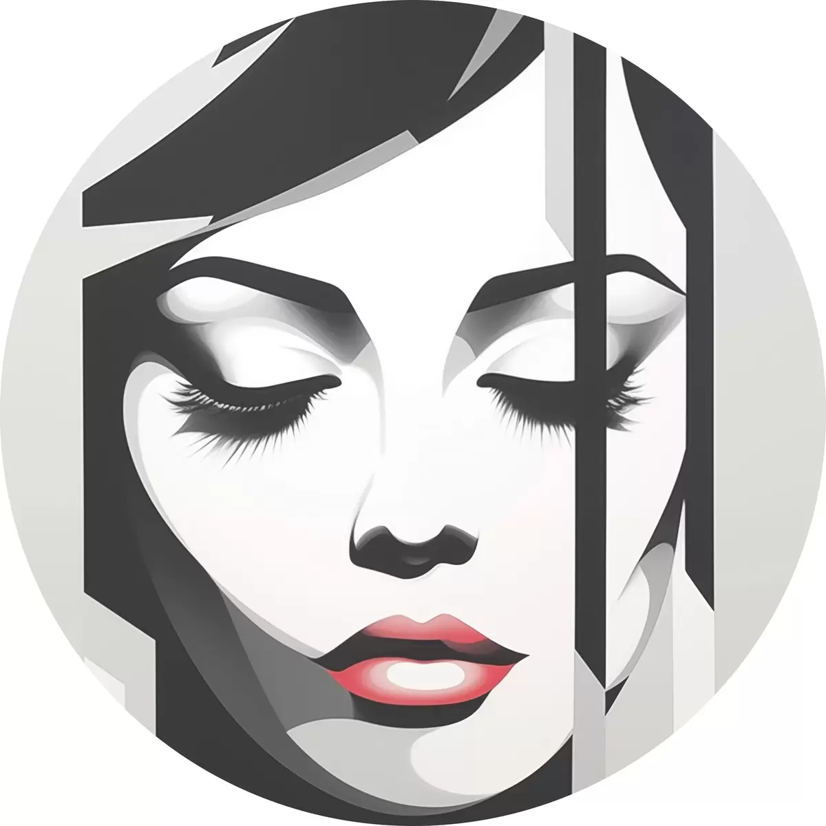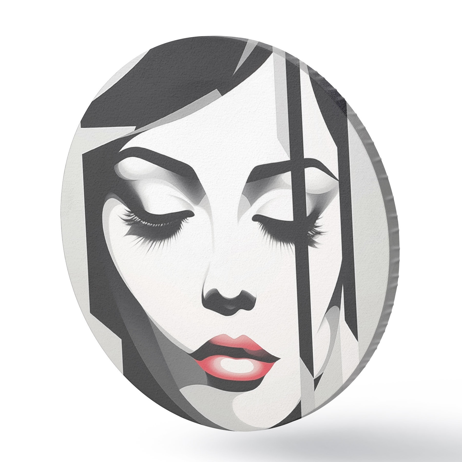 Quadri rotondi Volto in bianco e nero con occhi chiusi r45076