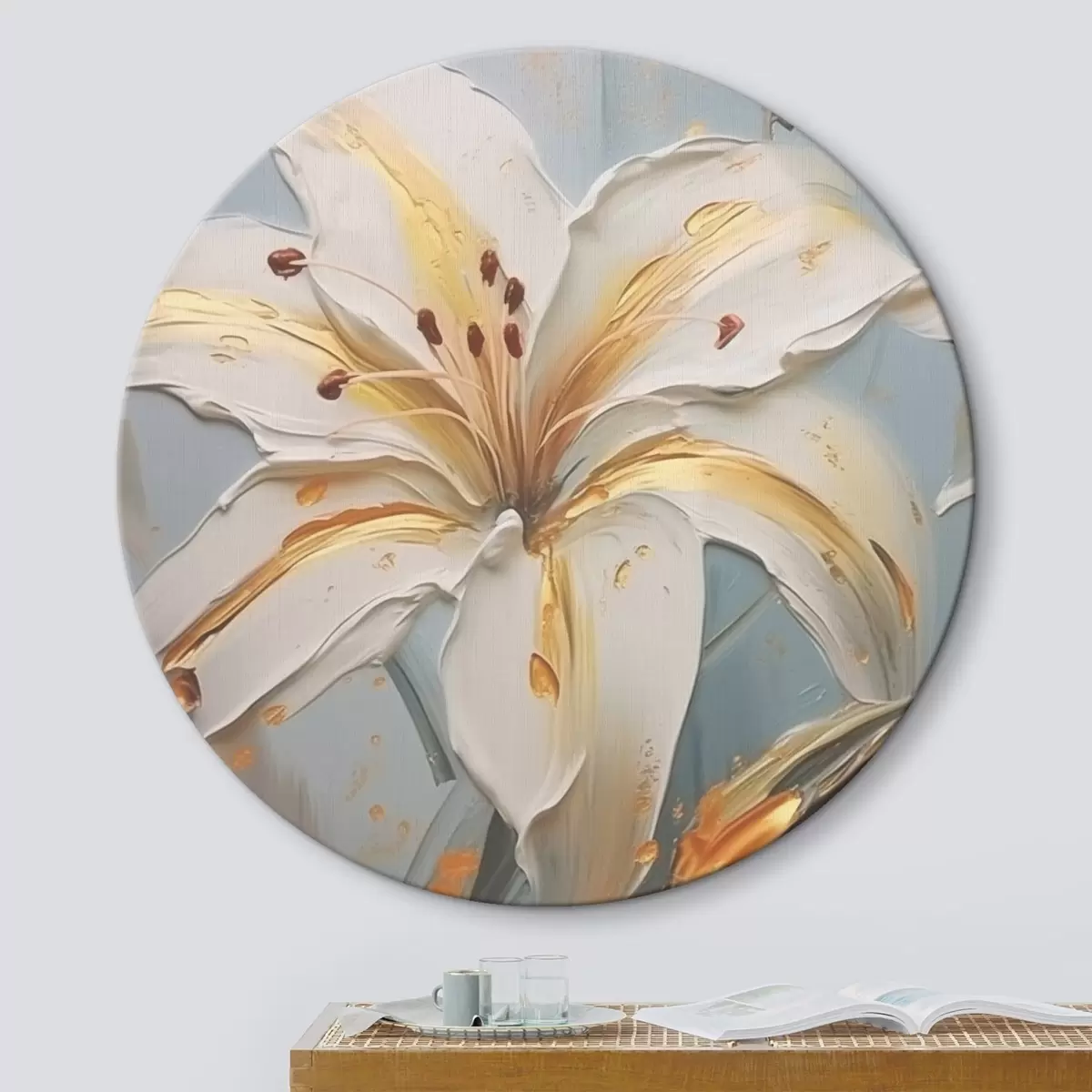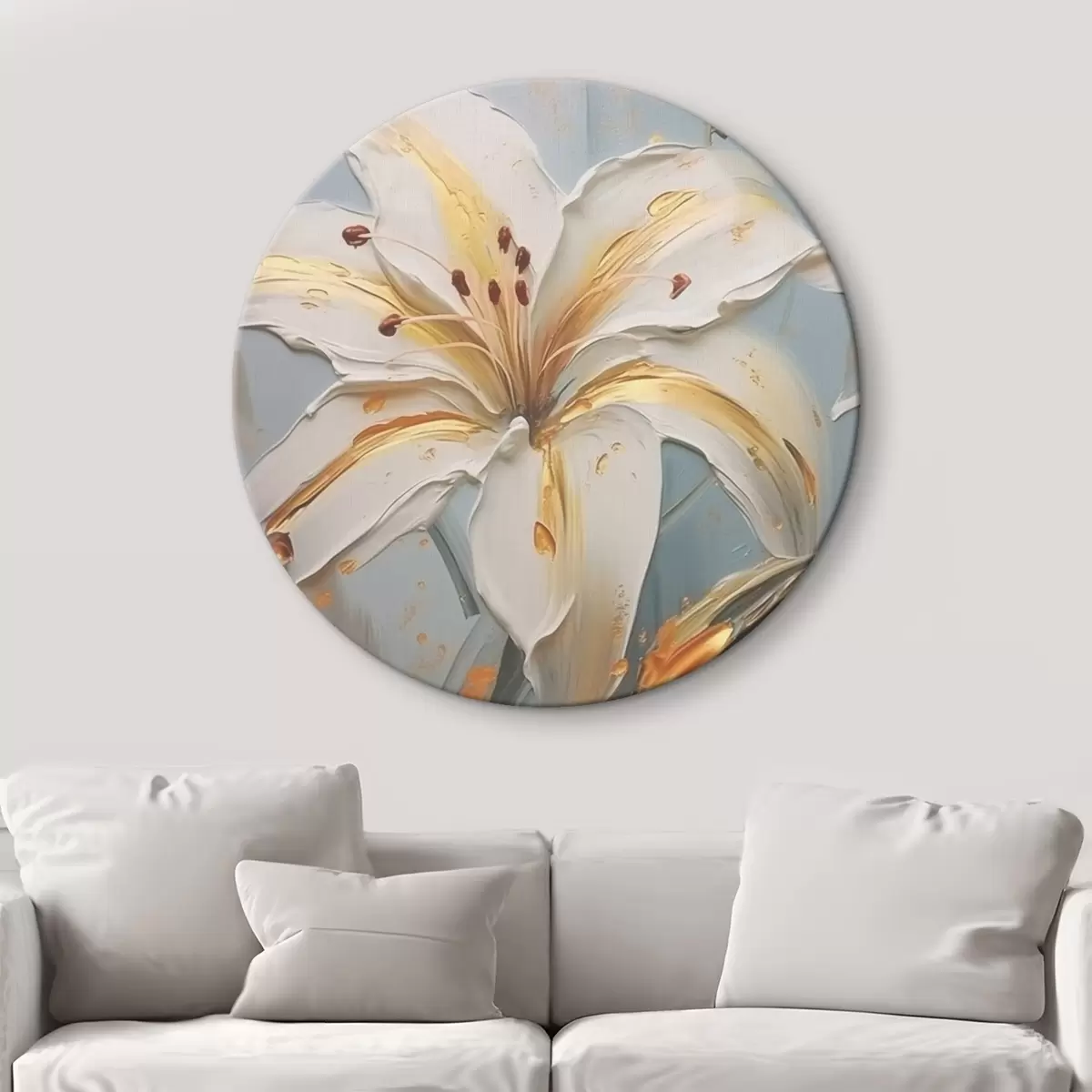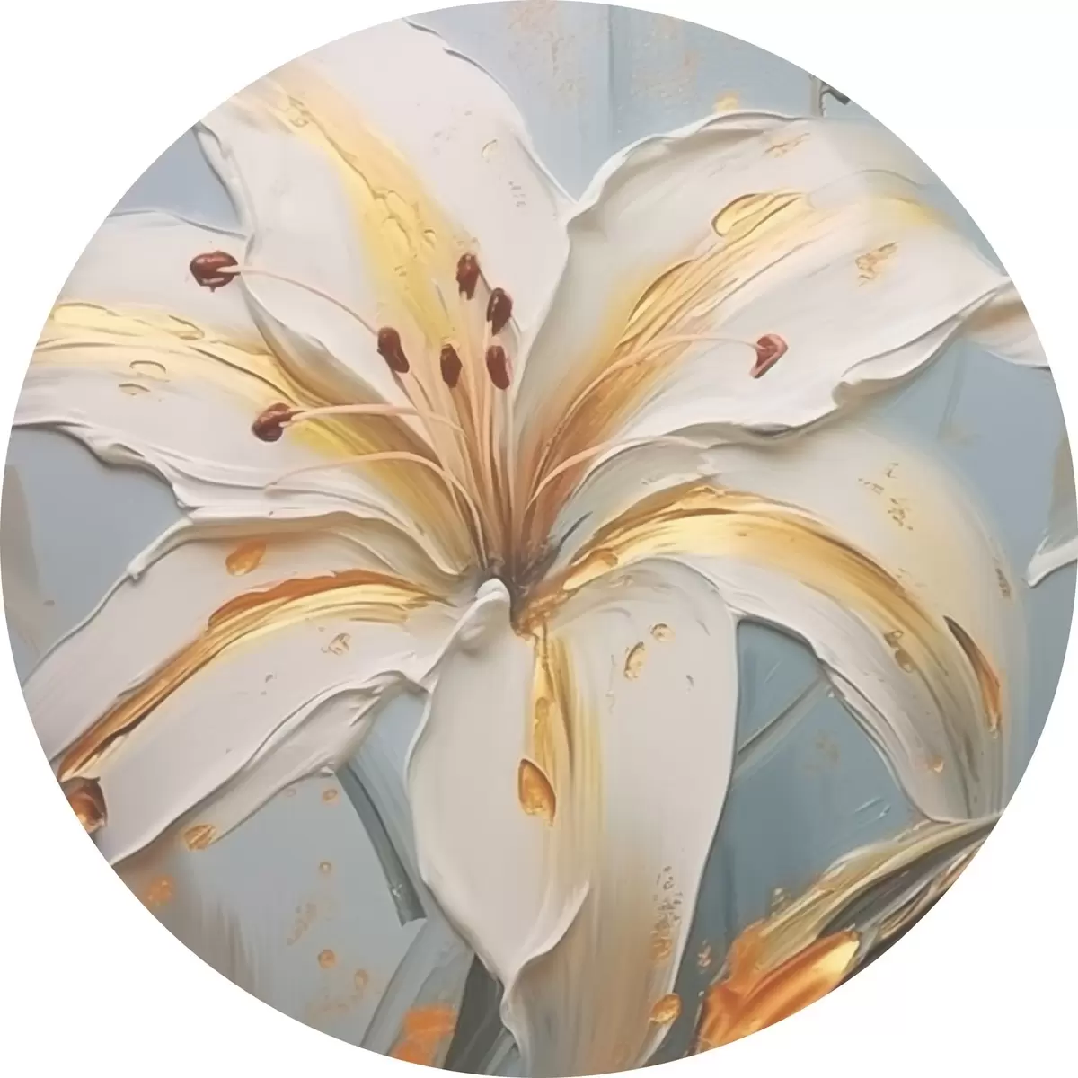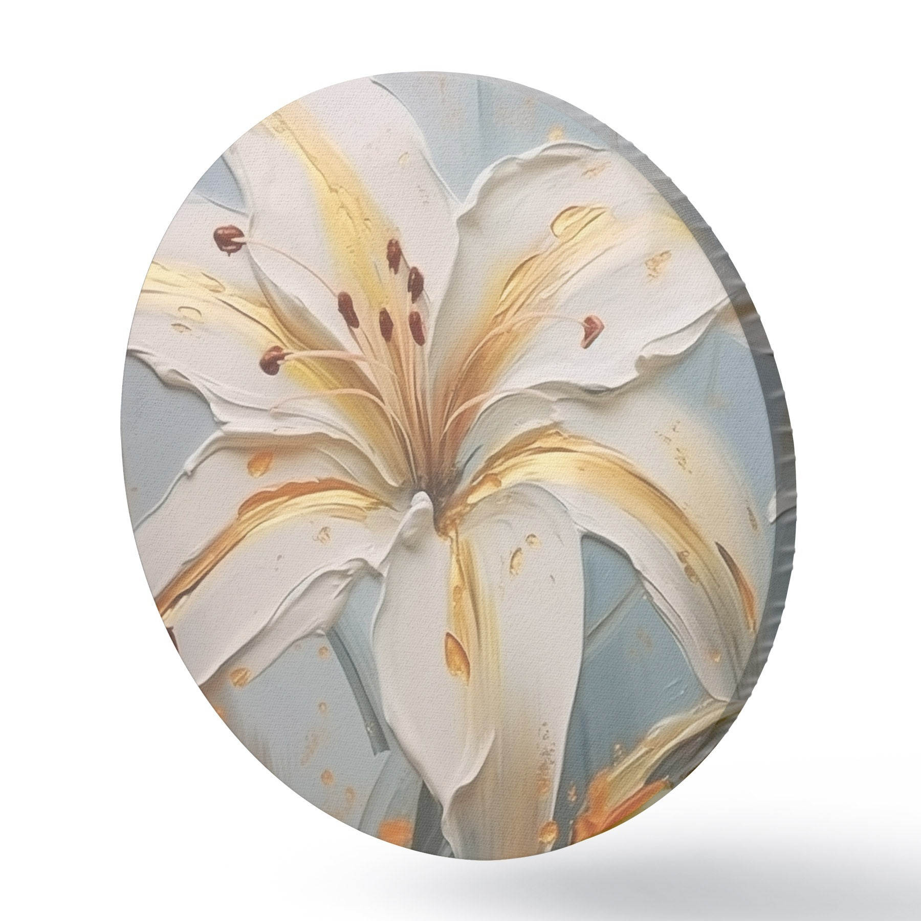 Quadri rotondi Giglio bianco con tratti gialli su sfondo blu r45077