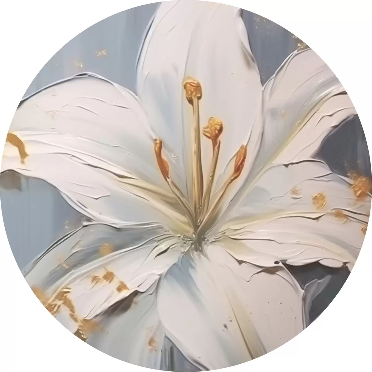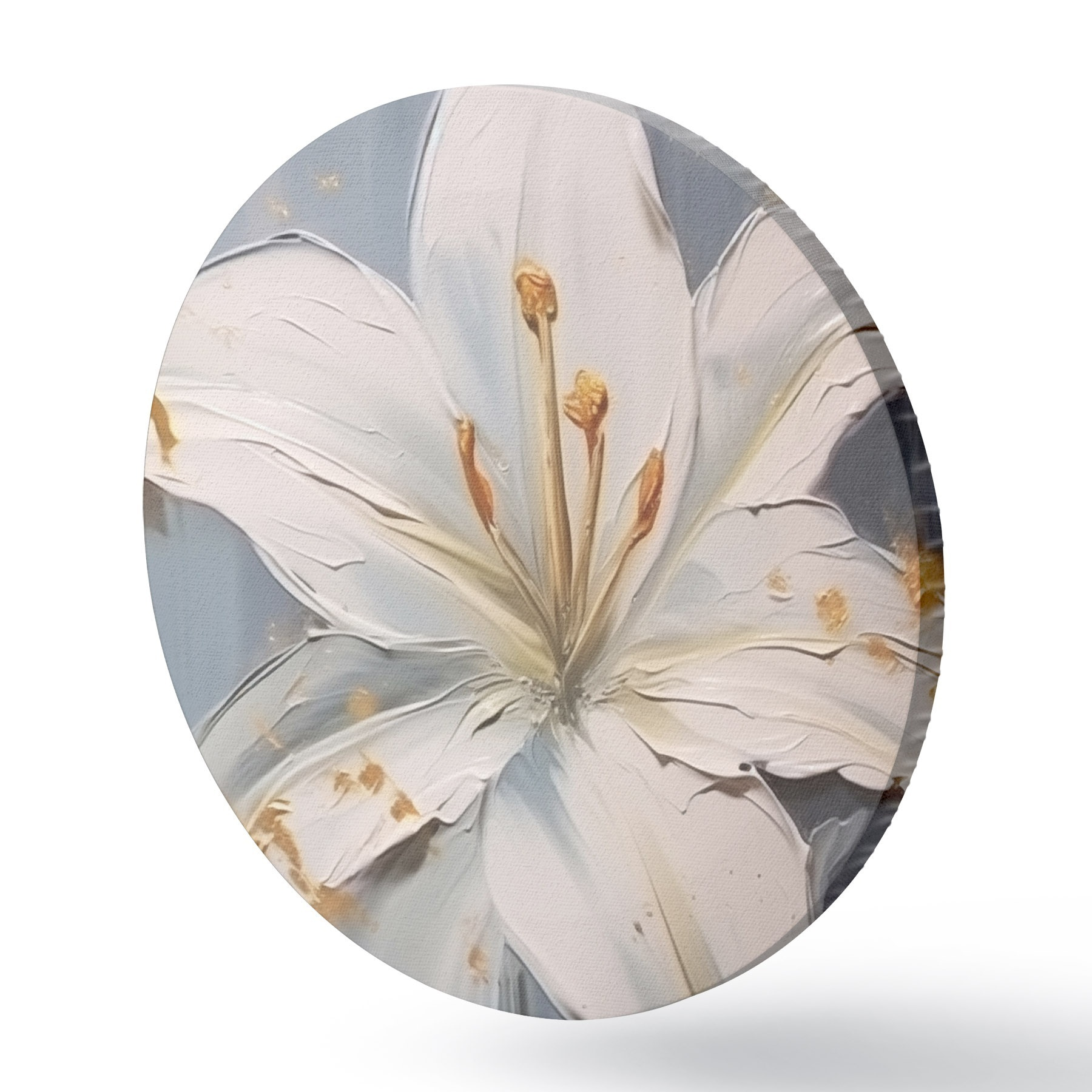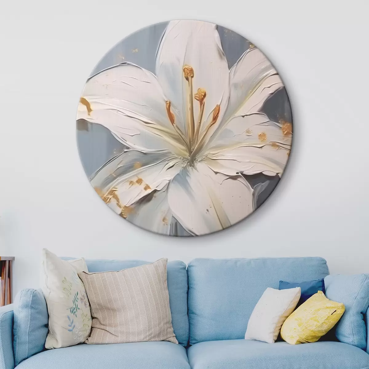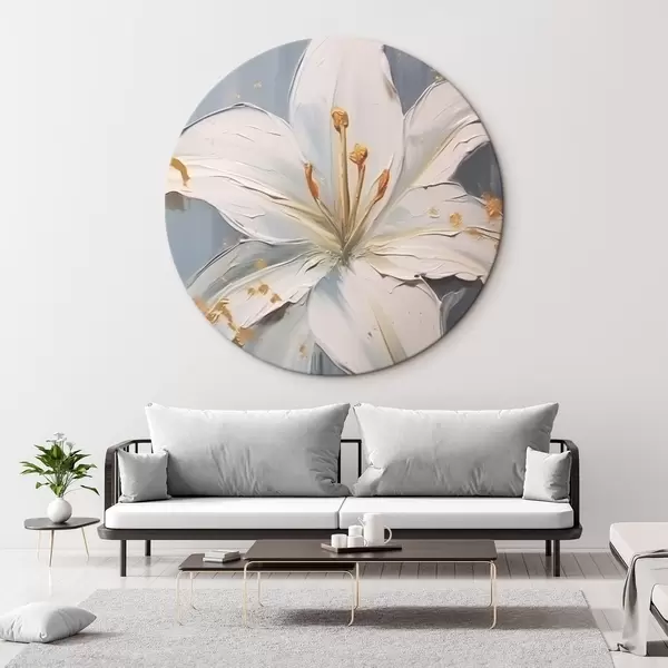Quadri rotondi Giglio bianco con accenti gialli su sfondo blu r45078