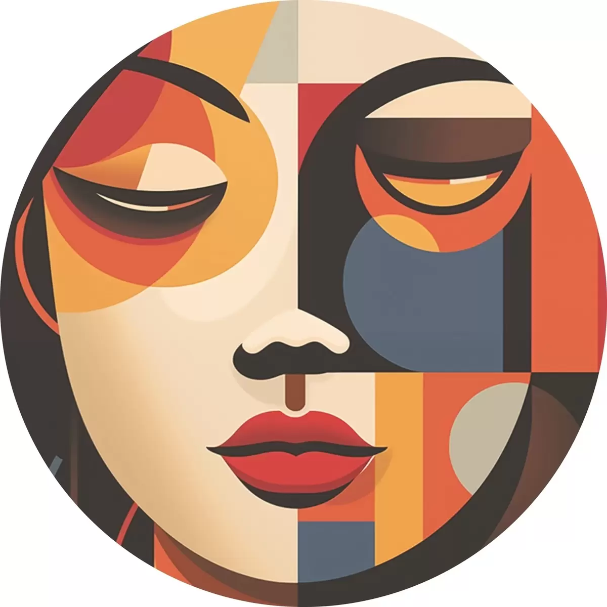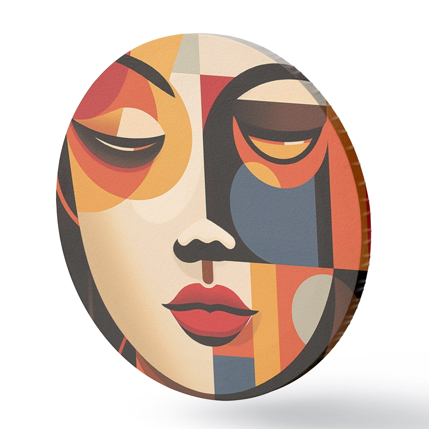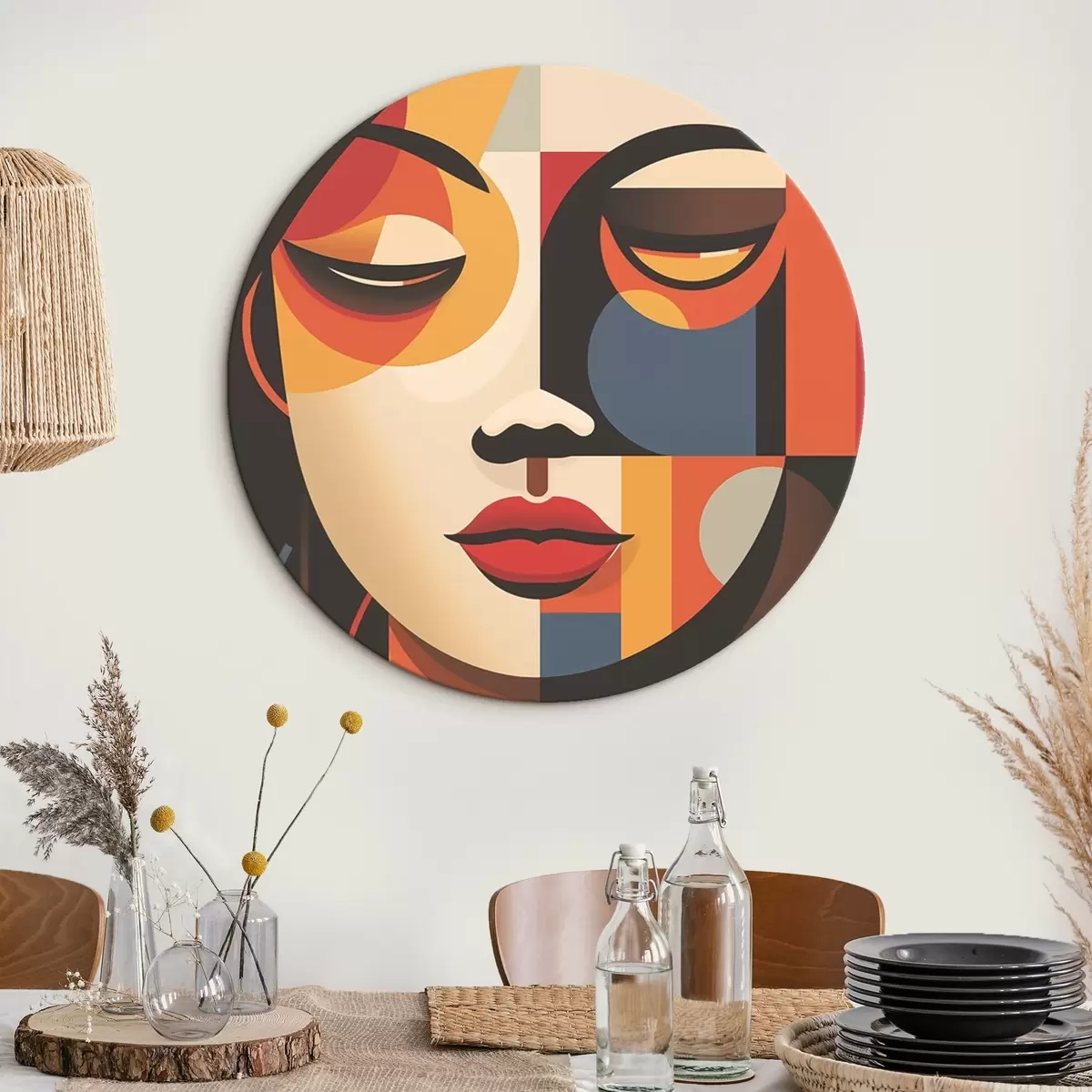 Quadri rotondi Volto femminile geometrico dai colori caldi r45087