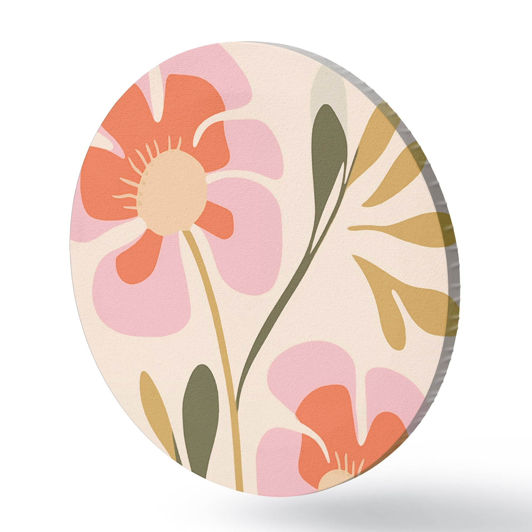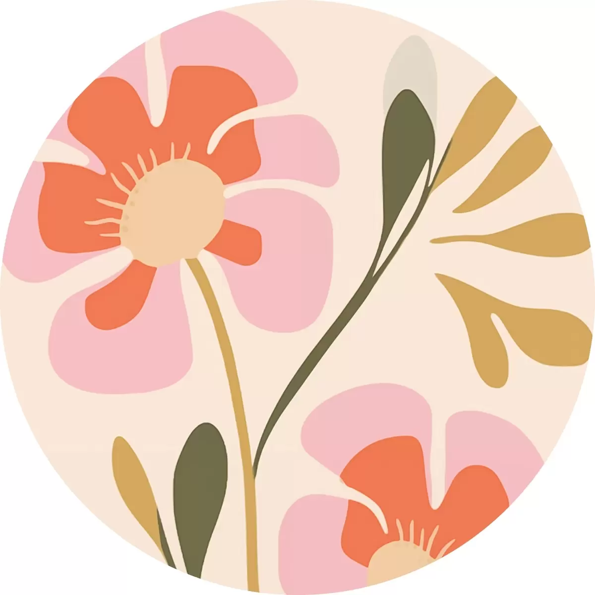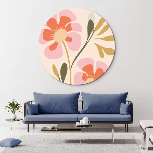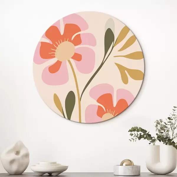 Quadri rotondi Fiori stilizzati rosa e arancione con foglie verdi r45140