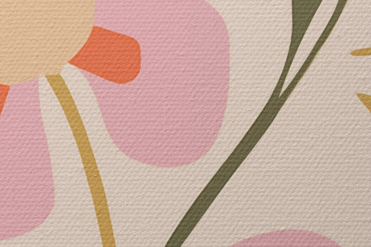 Immagine Fiori stilizzati rosa e arancione con foglie verdi Nr r45140