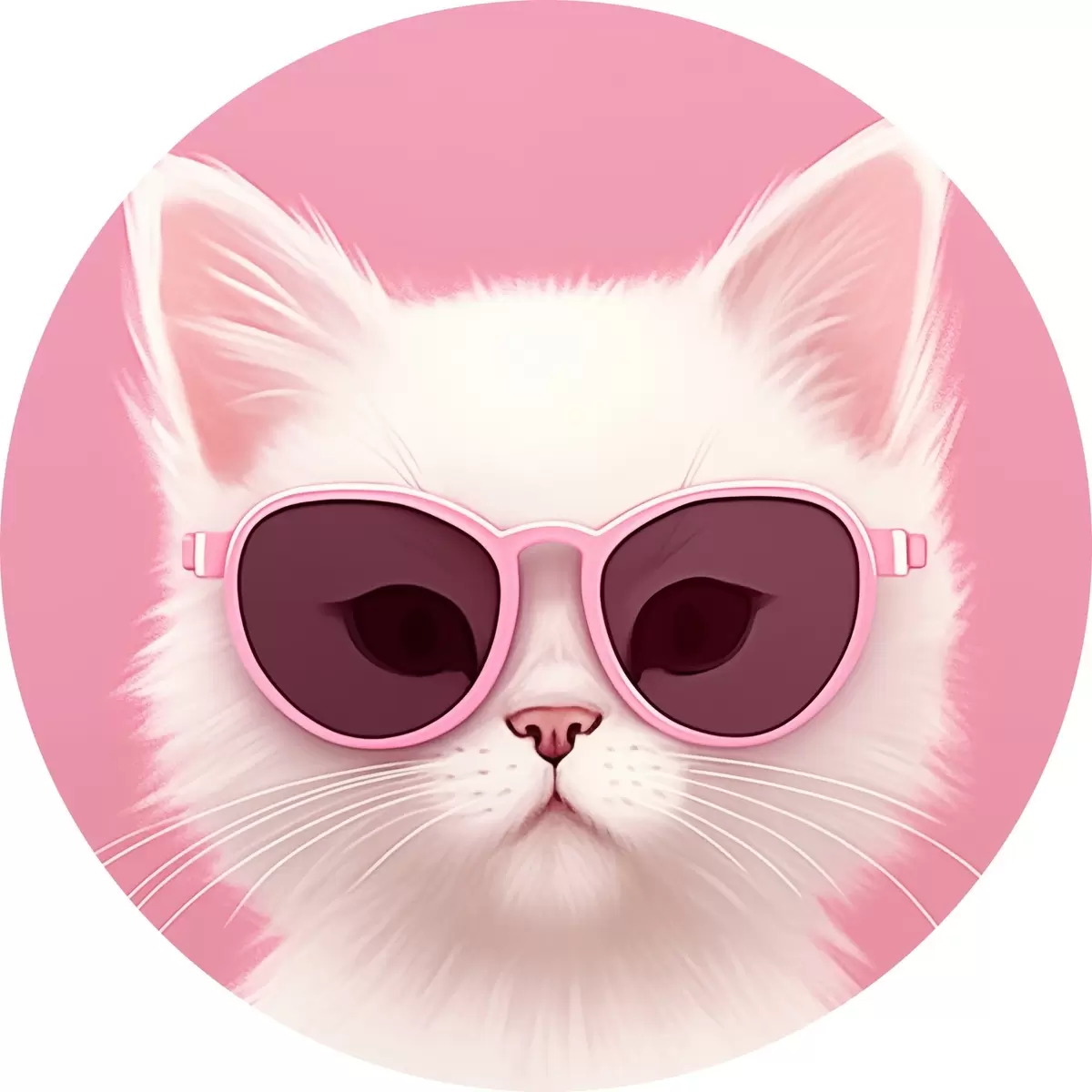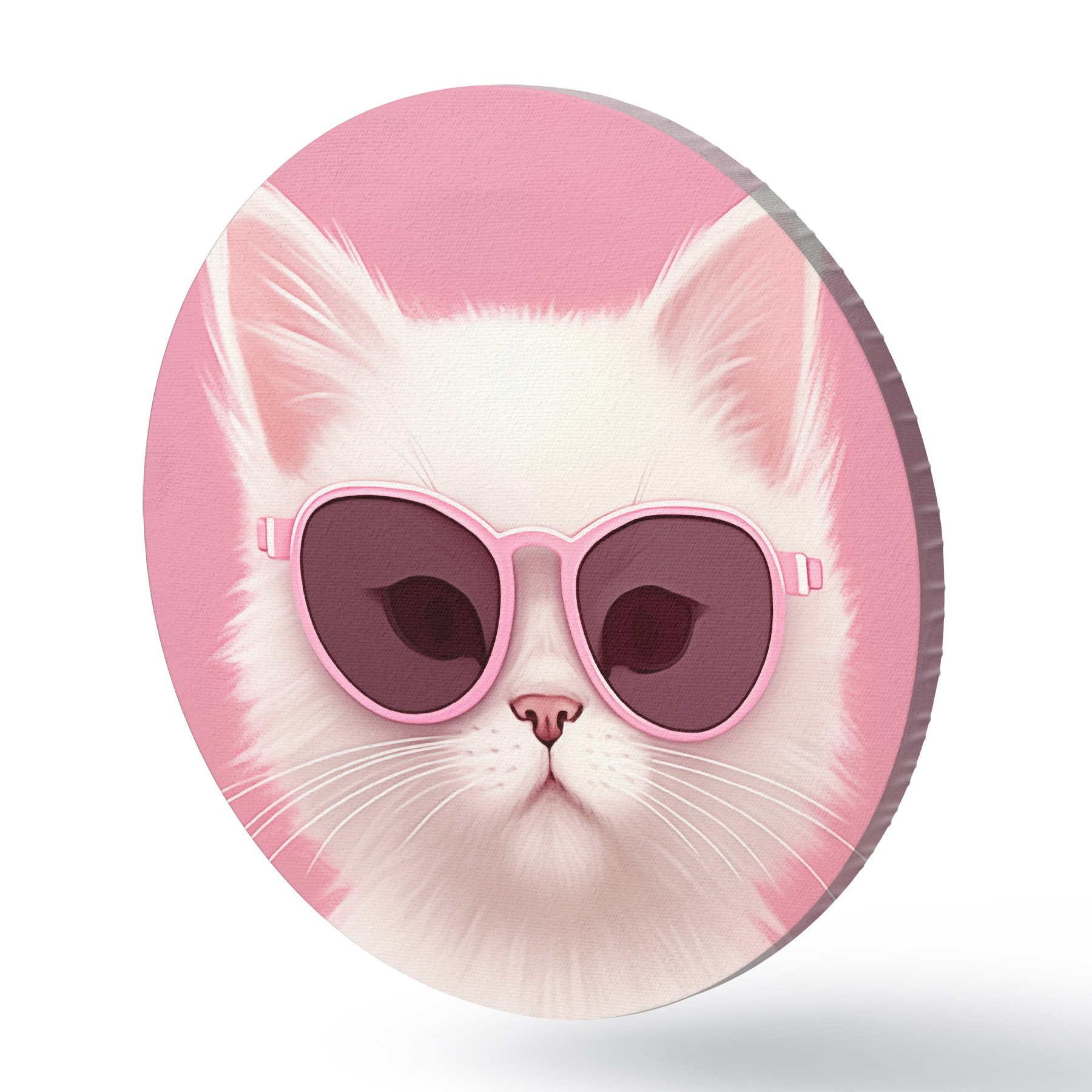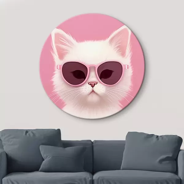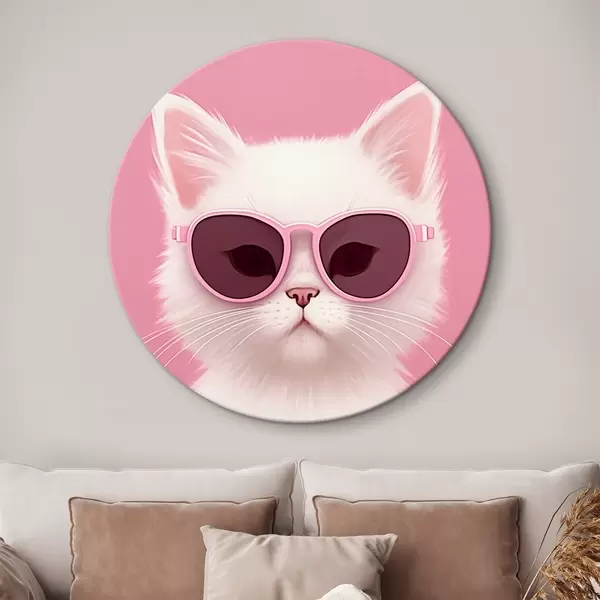 Quadri rotondi Gatto bianco con occhiali rosa r45145
