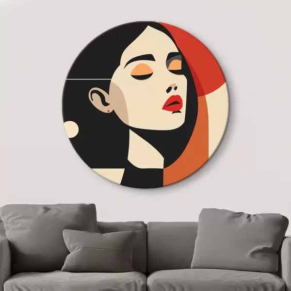 Quadri rotondi Ritratto astratto di donna in stile Bauhaus r45166