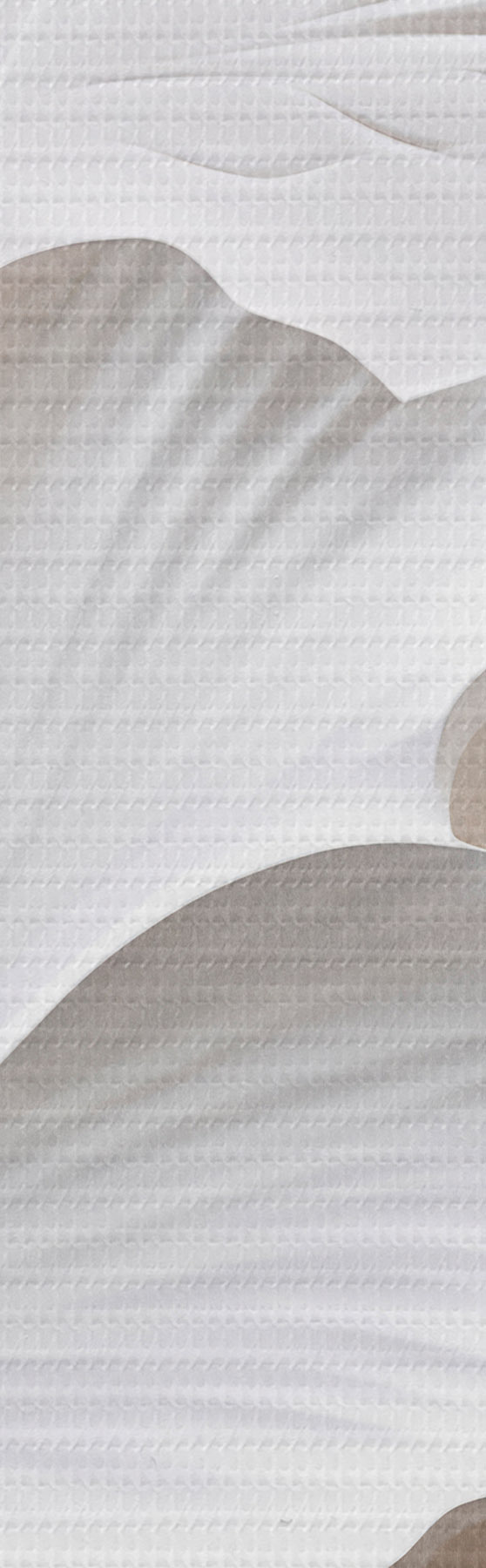Immagine Fiori bianchi minimalisti decorativi con foglie, imitazione in rilievo, sfondo bianco Nr r45180