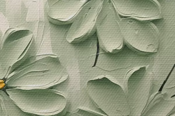 Immagine Fiori verdi con centro giallo dipinti con pennellate spesse su sfondo chiaro Nr r45265
