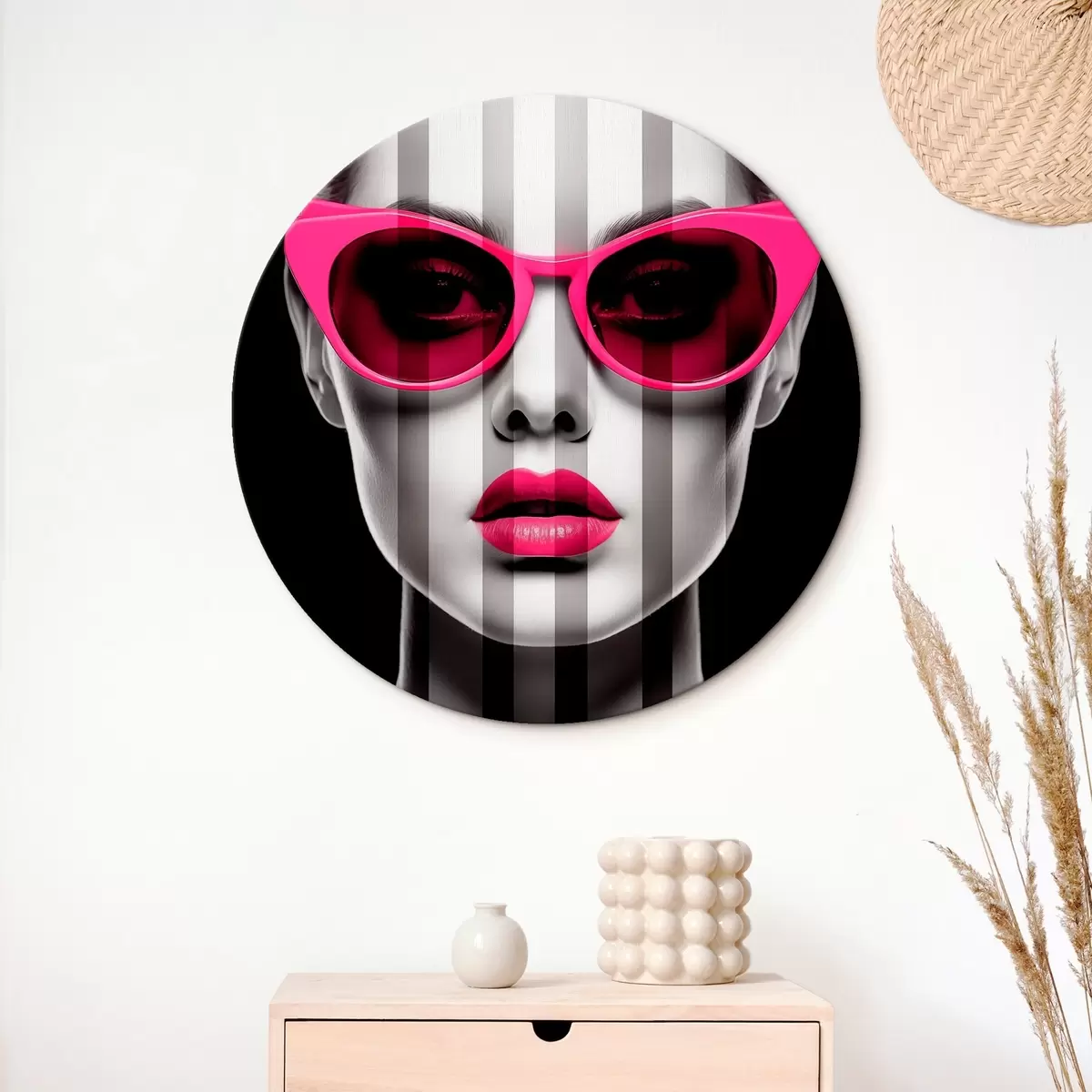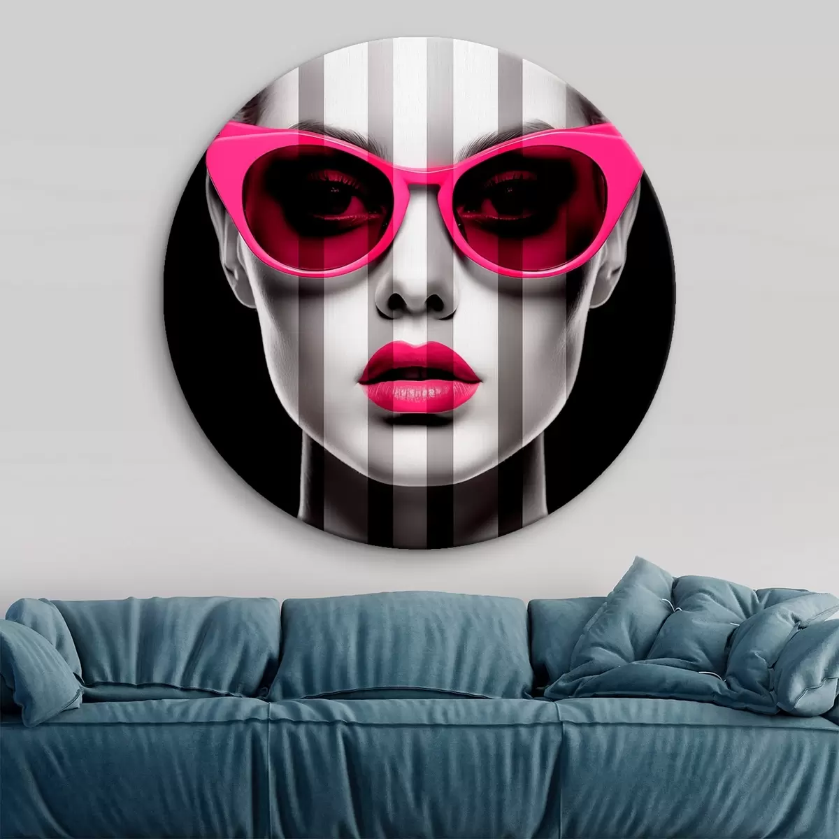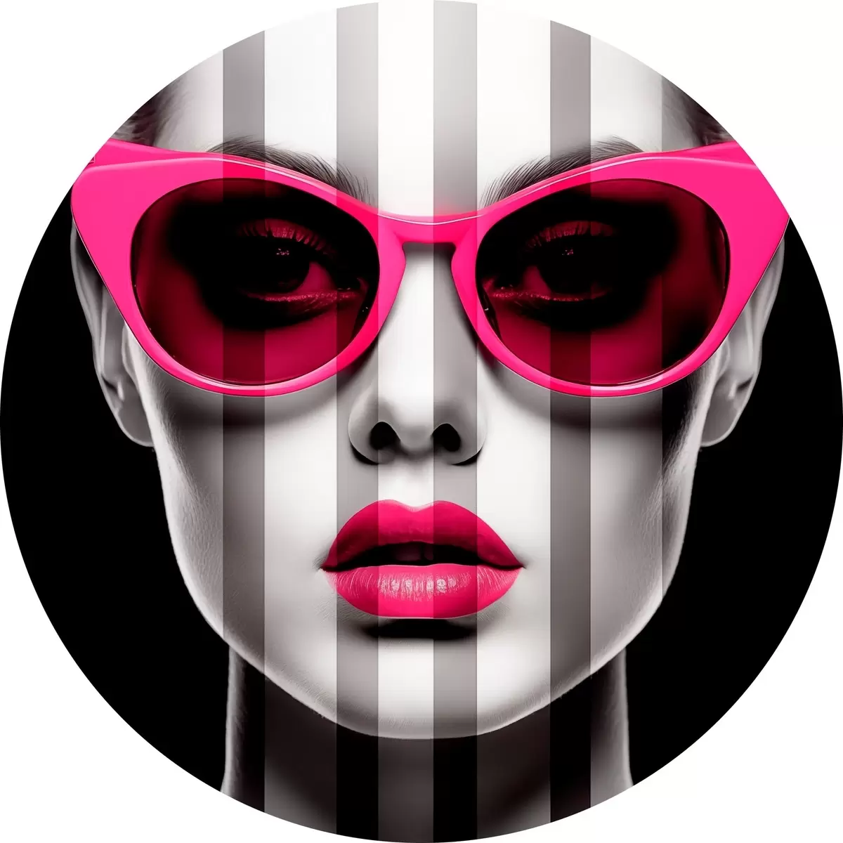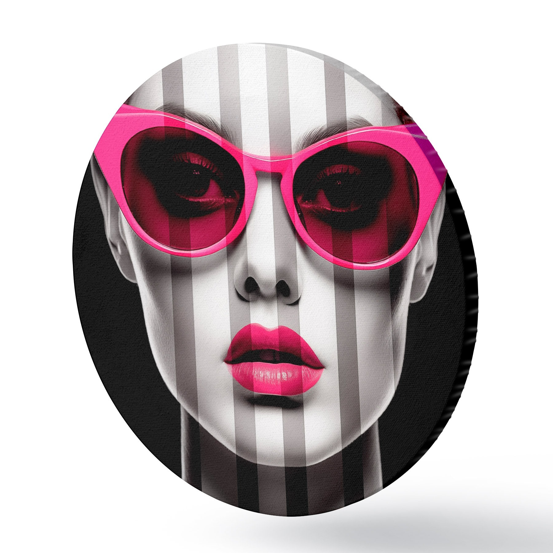 Quadri rotondi Donna con occhiali rosa a righe bianche e nere r45315
