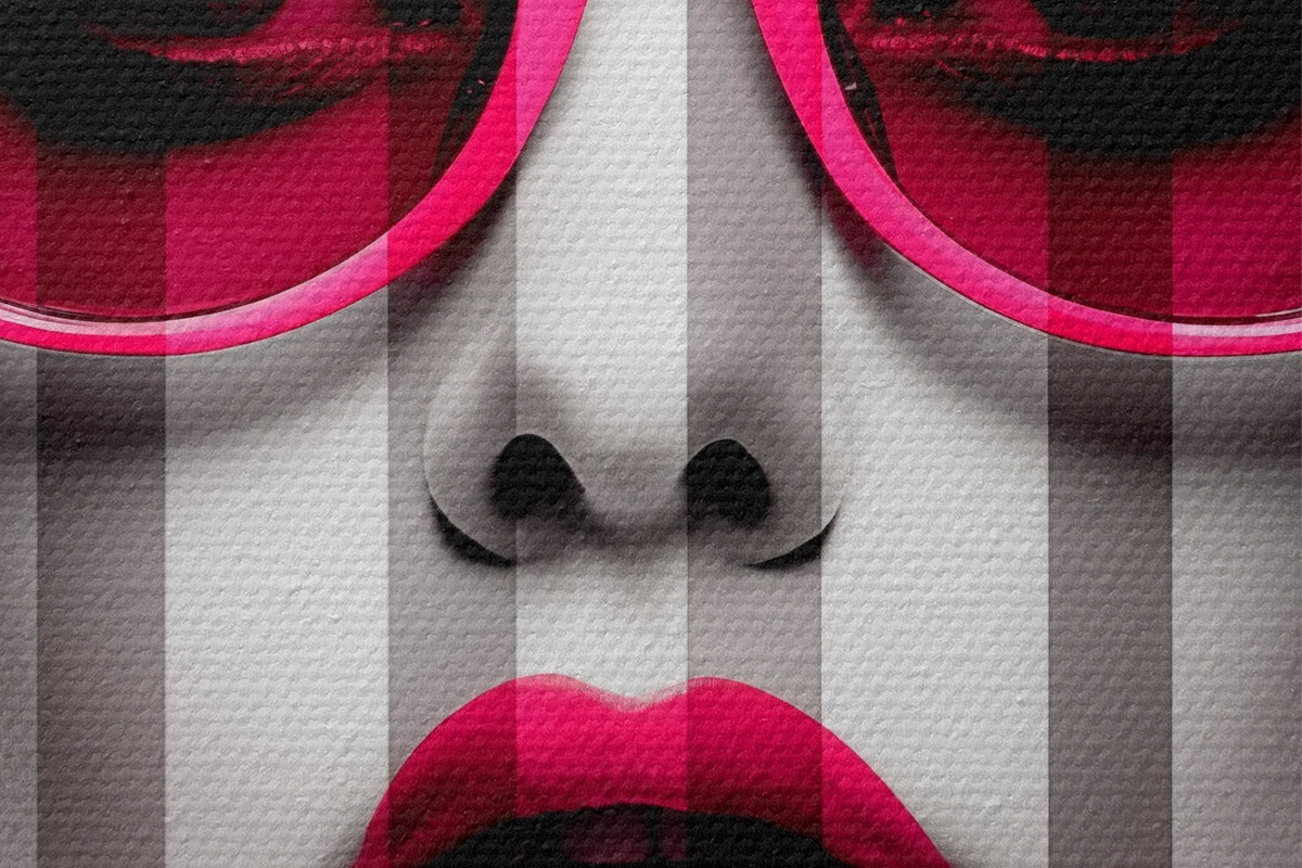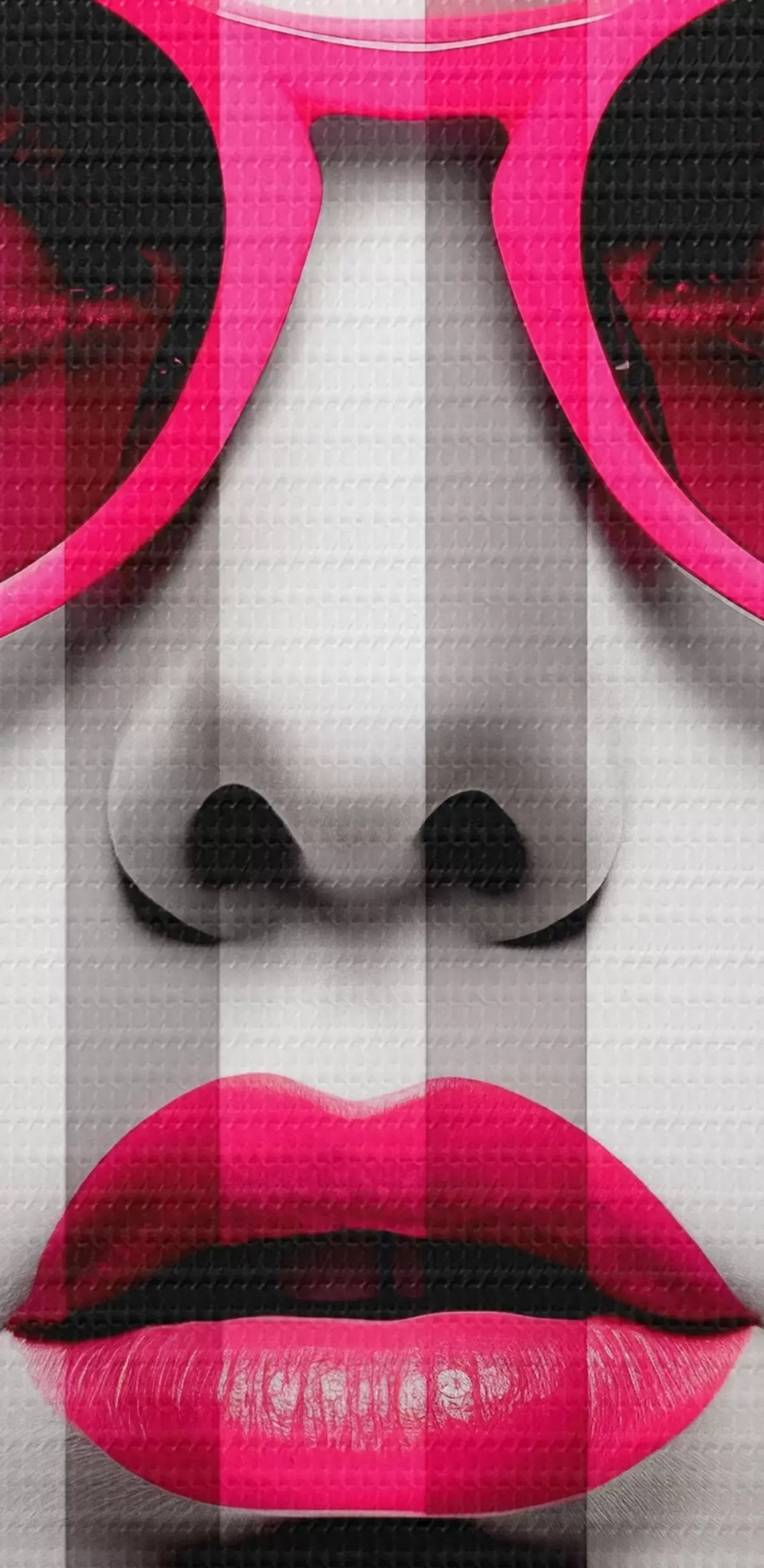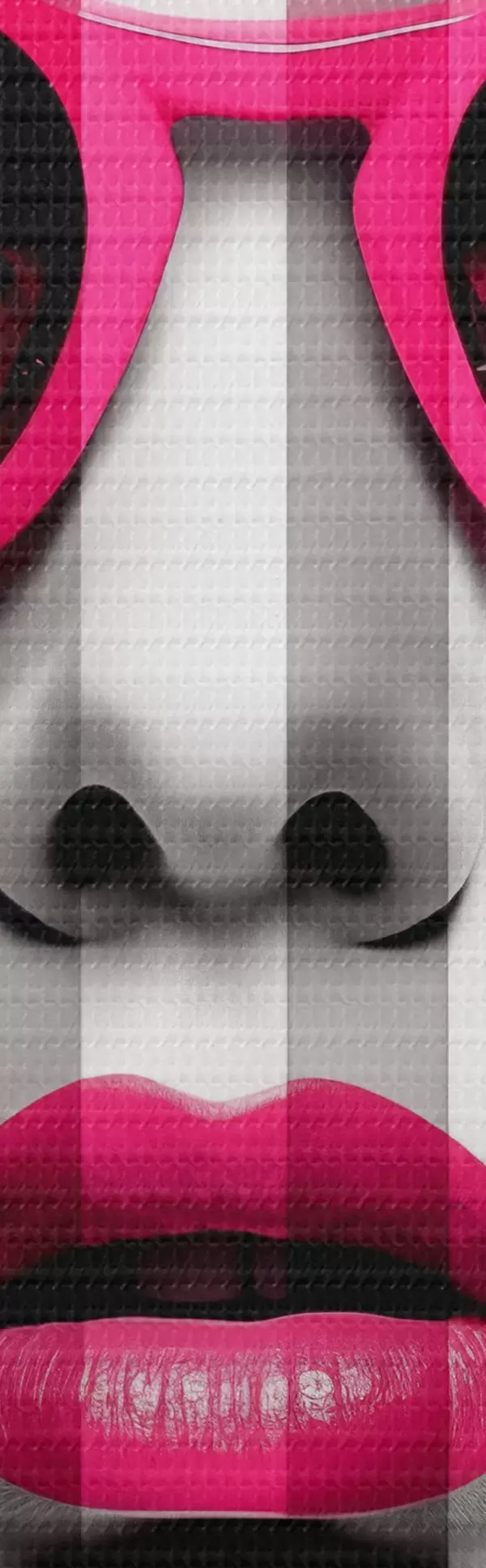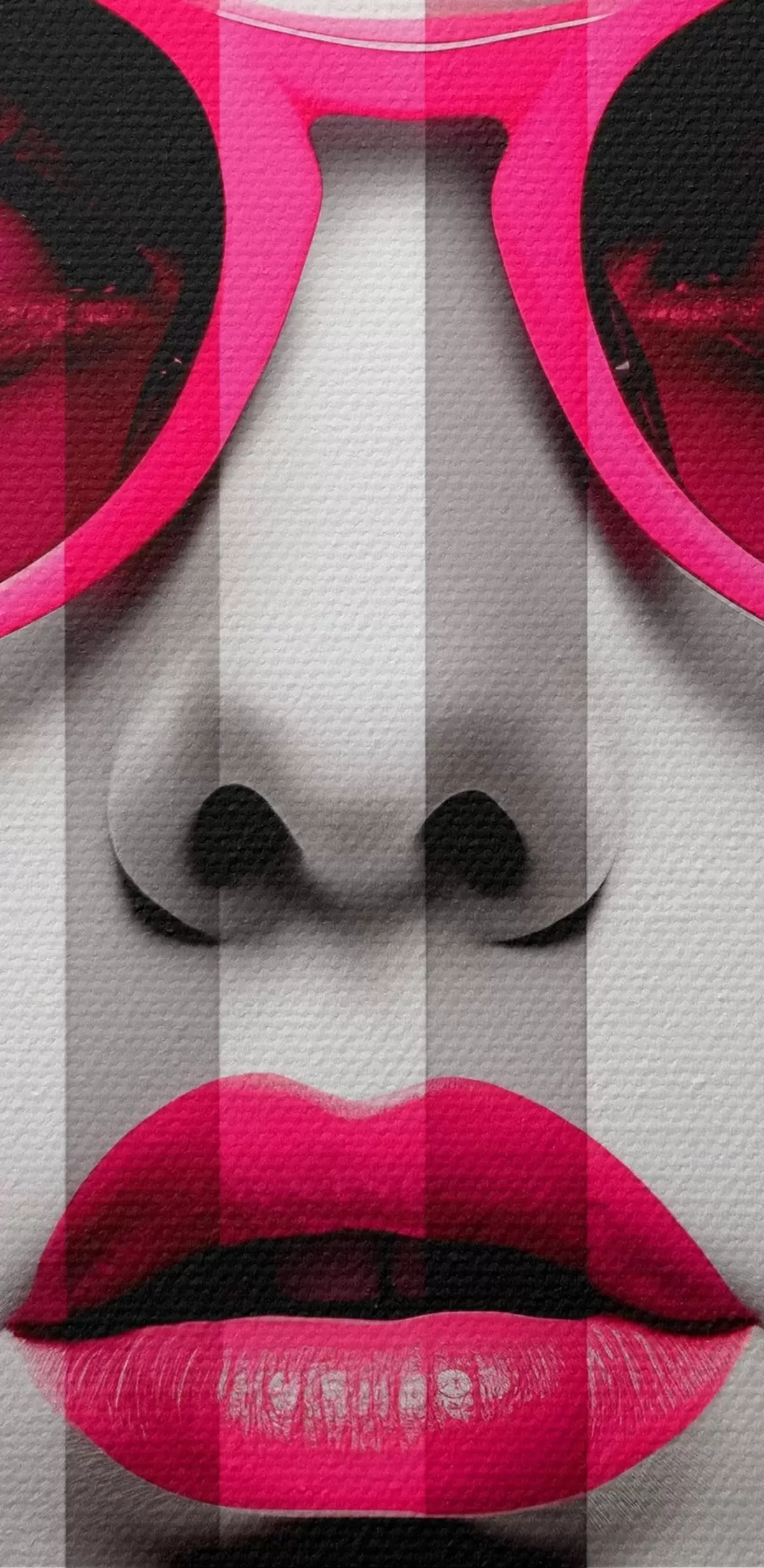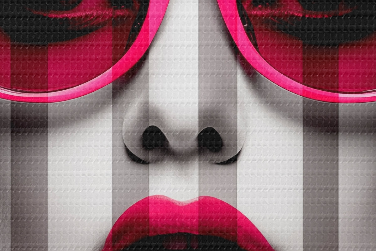 Immagine Donna con occhiali rosa a righe bianche e nere Nr r45315