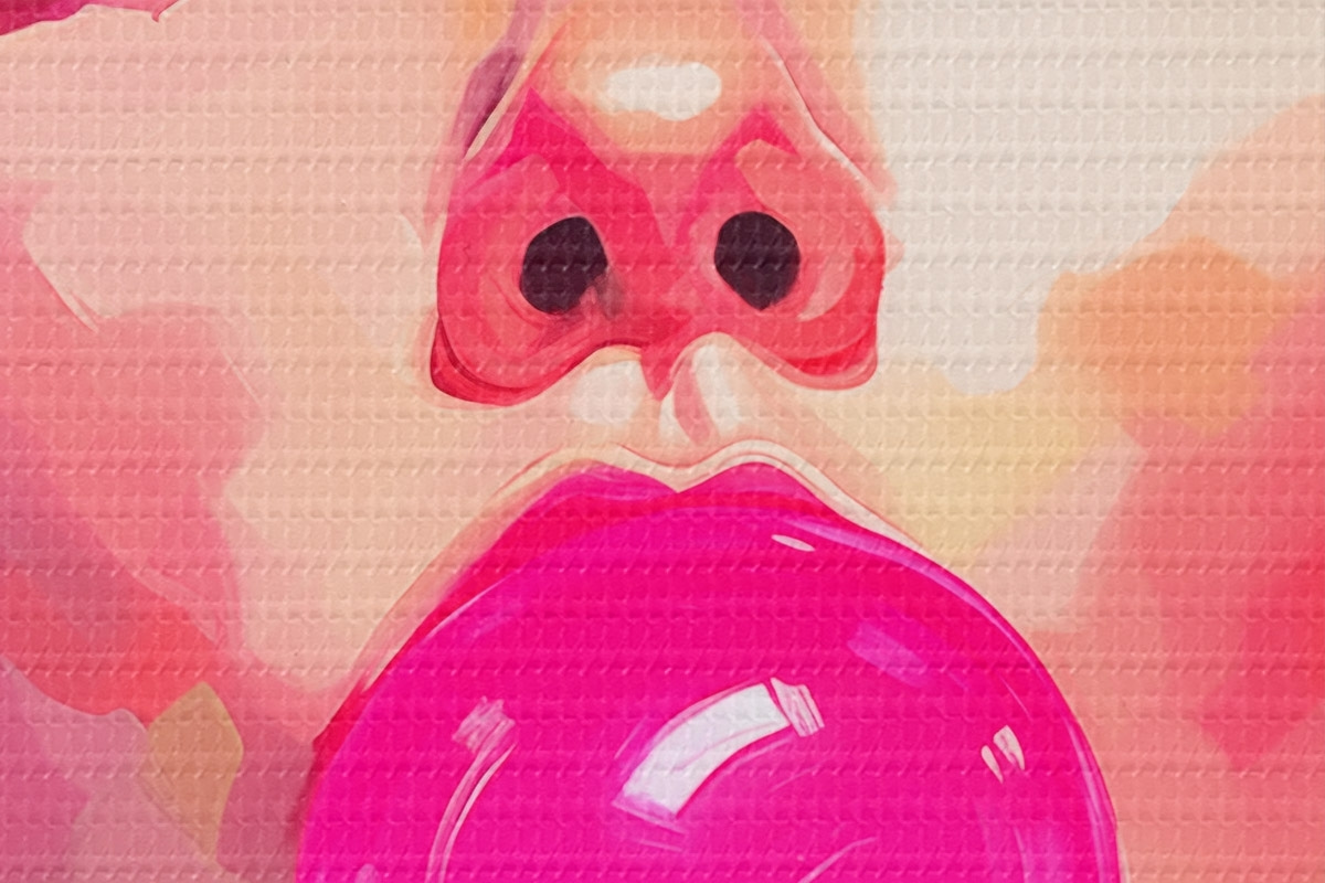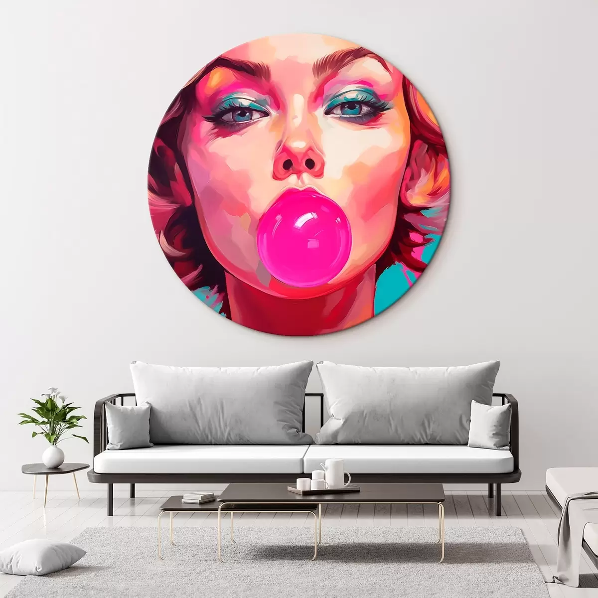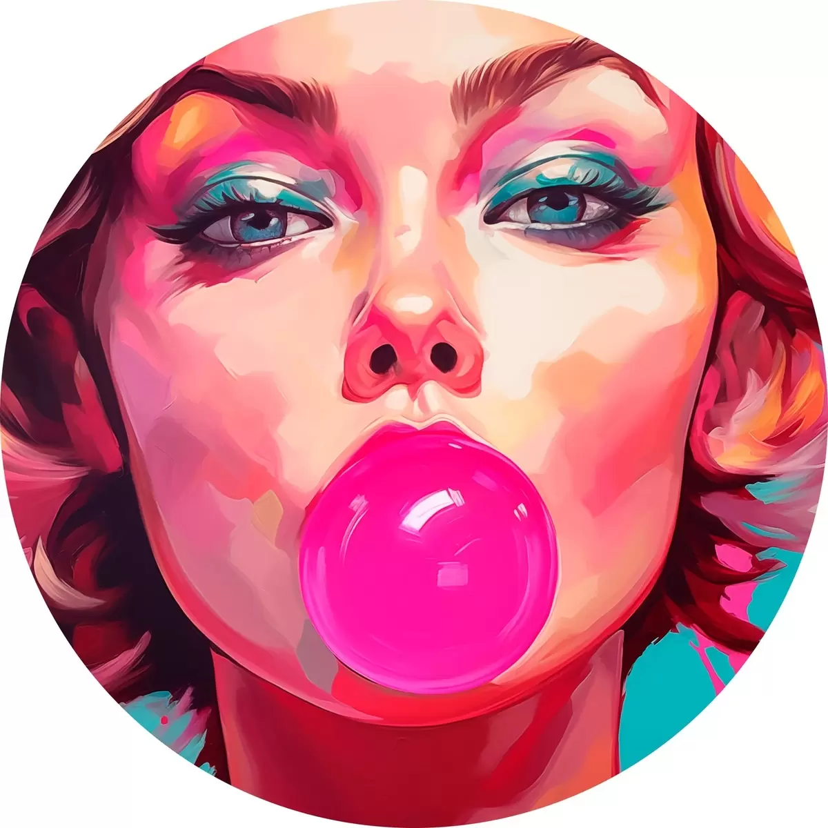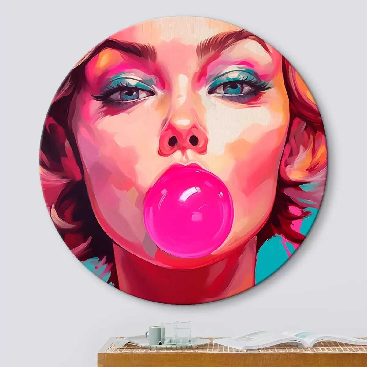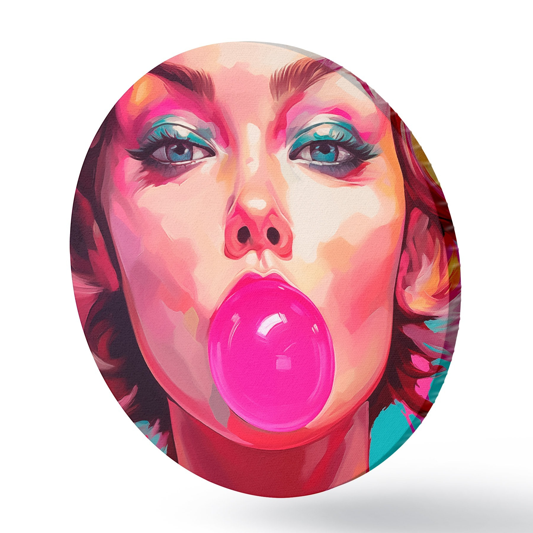 Quadri rotondi Ragazza con gomma da masticare rosa r45321