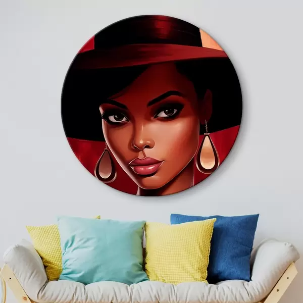 Quadri rotondi Donna con cappello e orecchini r45322
