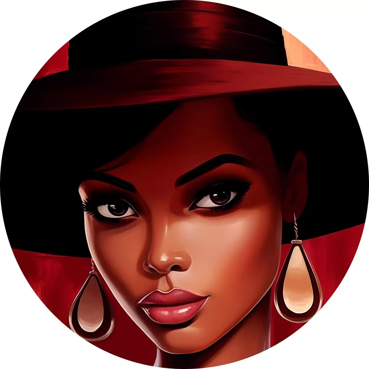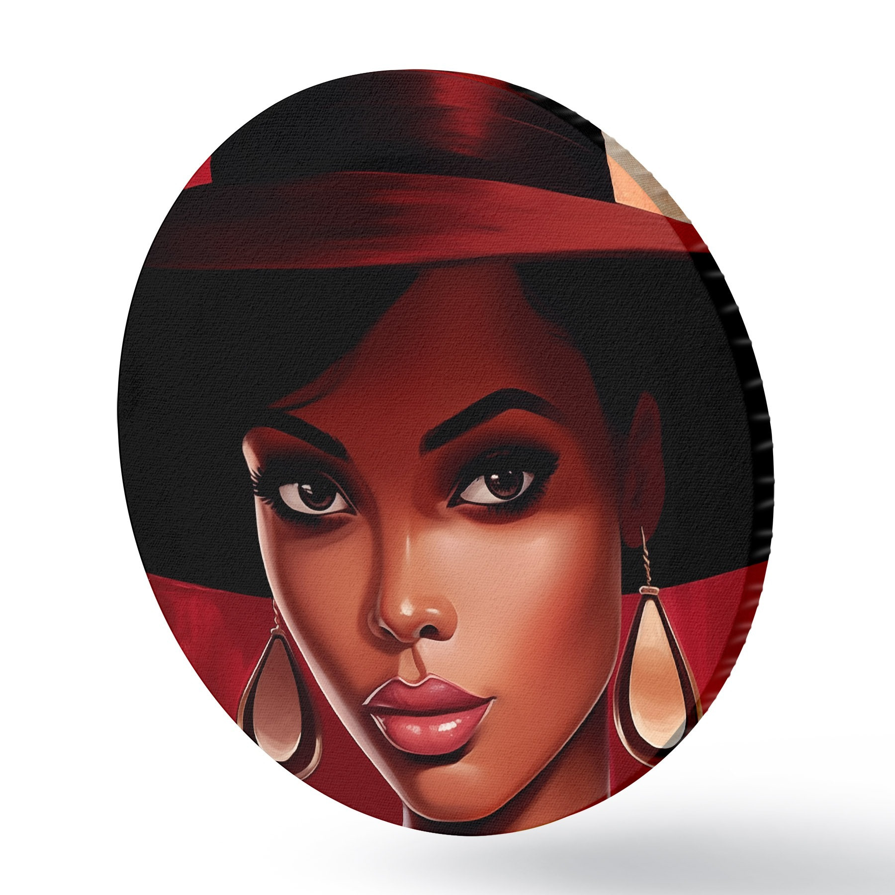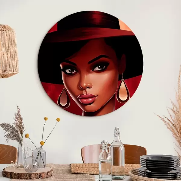 Quadri rotondi Donna con cappello e orecchini r45322