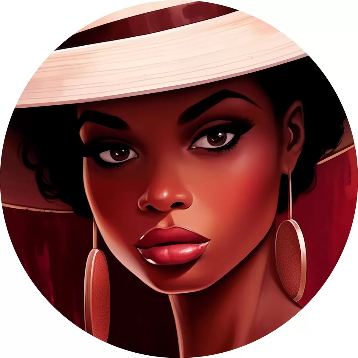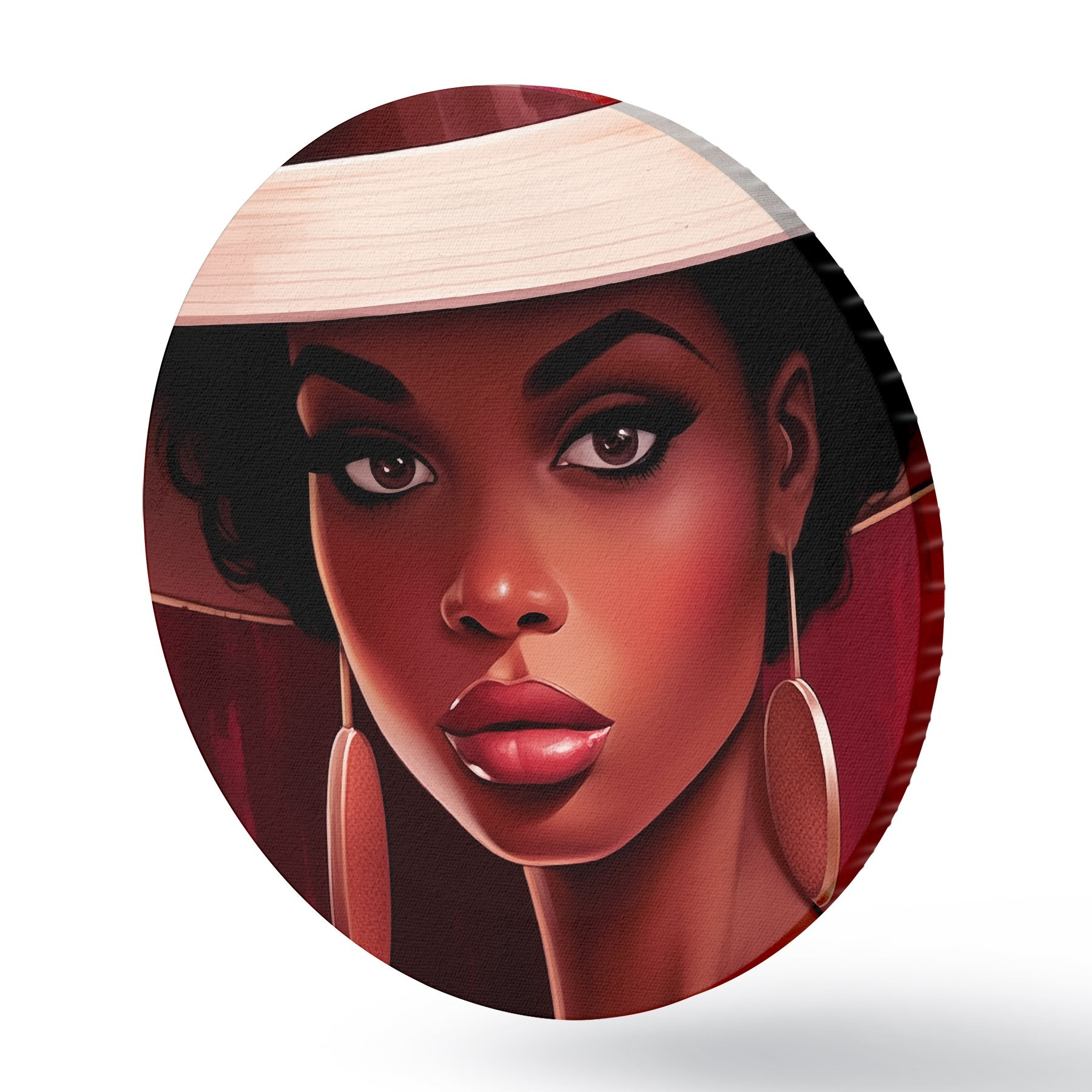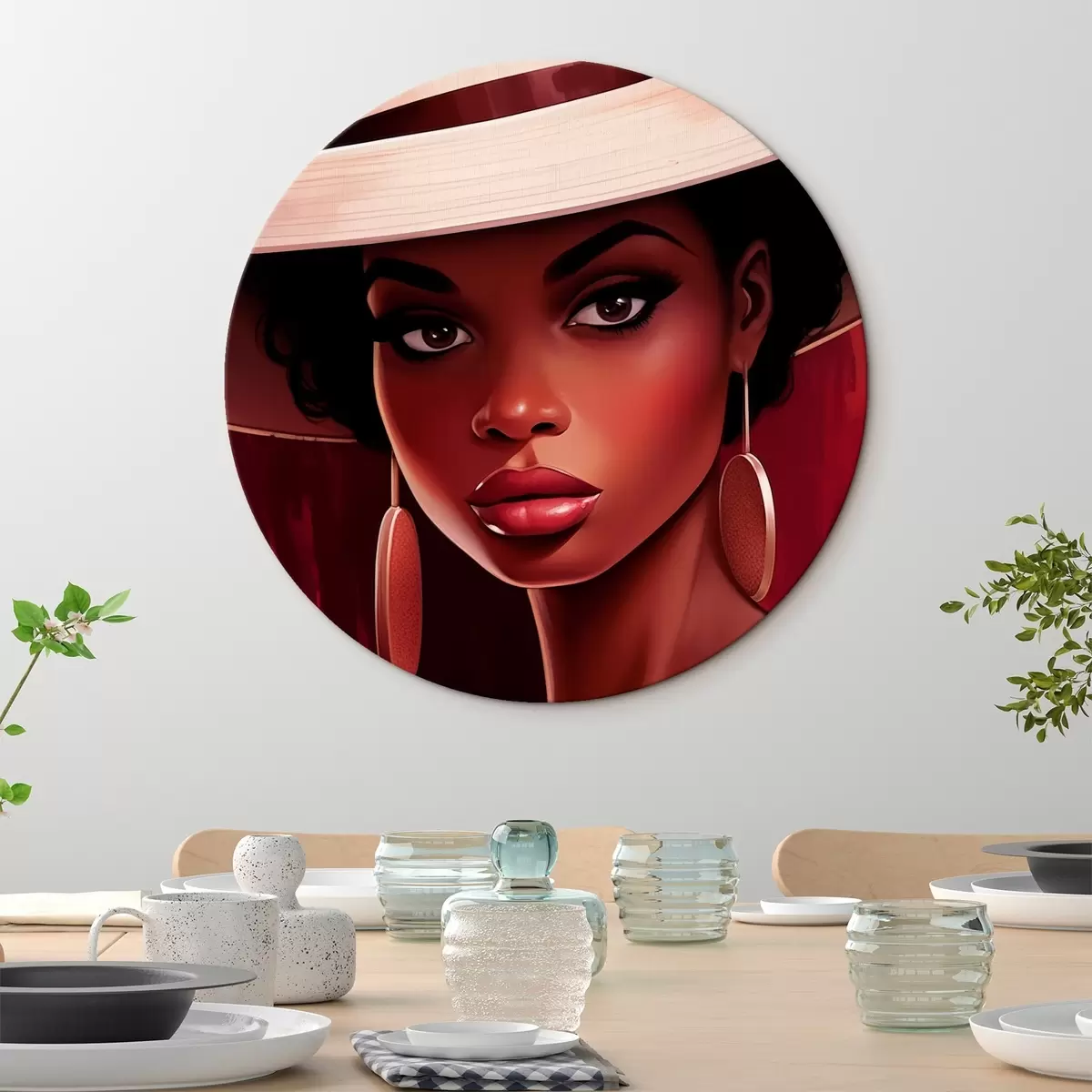 Quadri rotondi Donna con cappello chiaro e orecchini rotondi r45323
