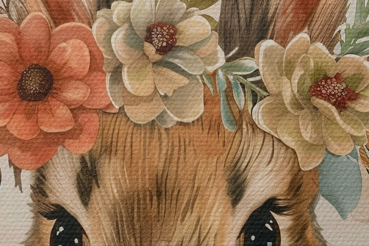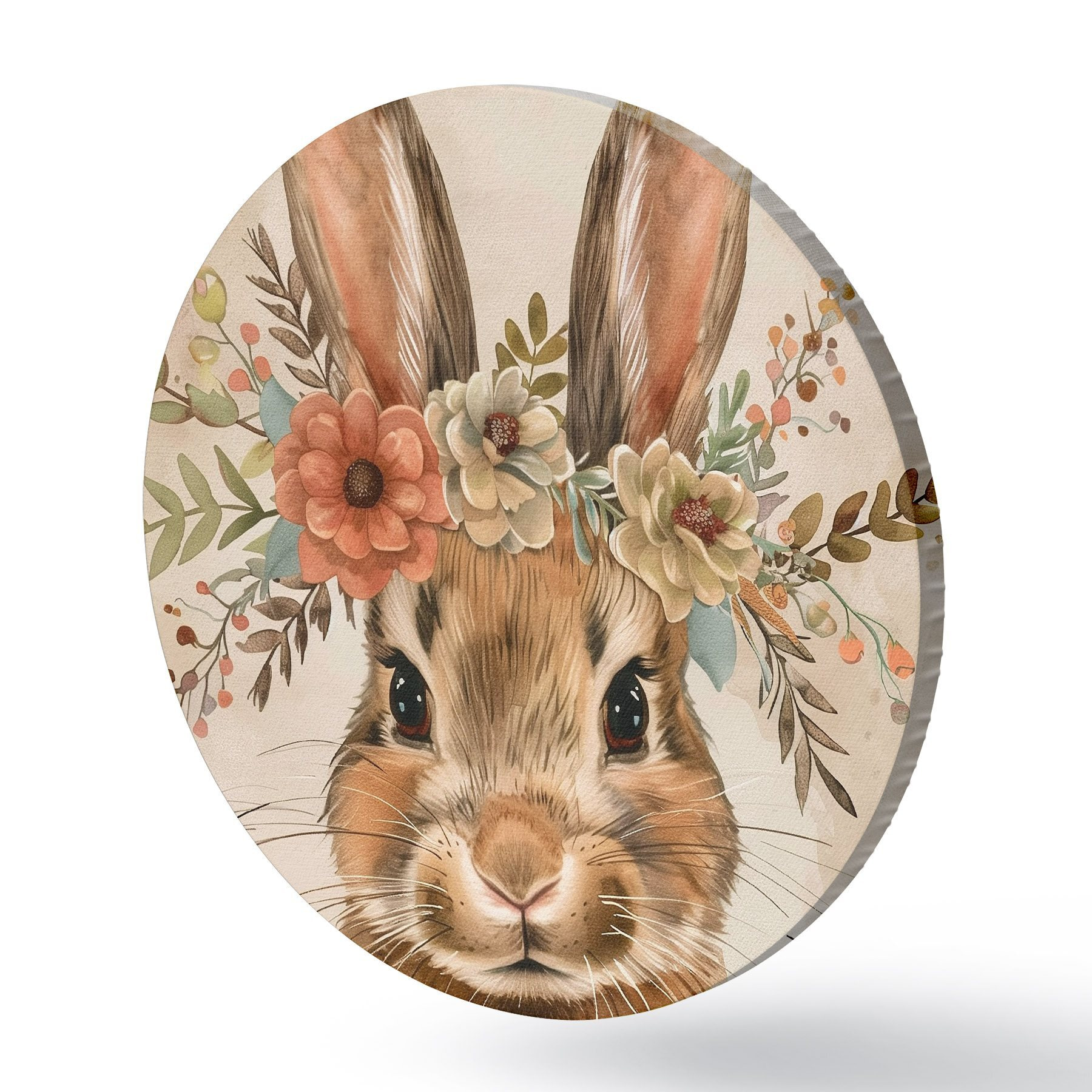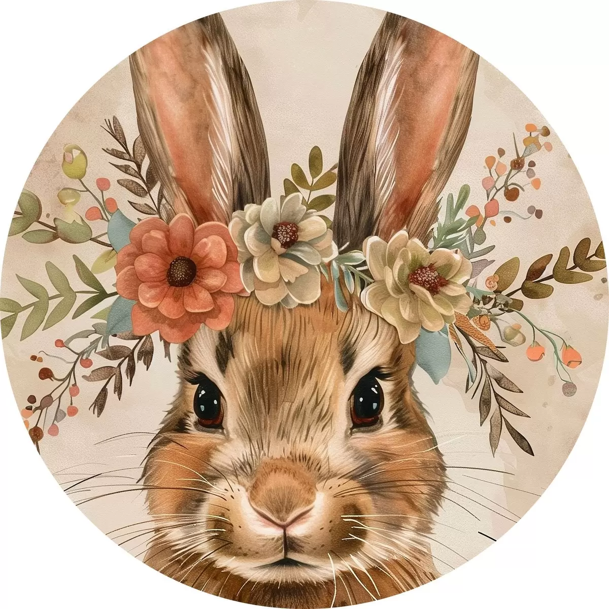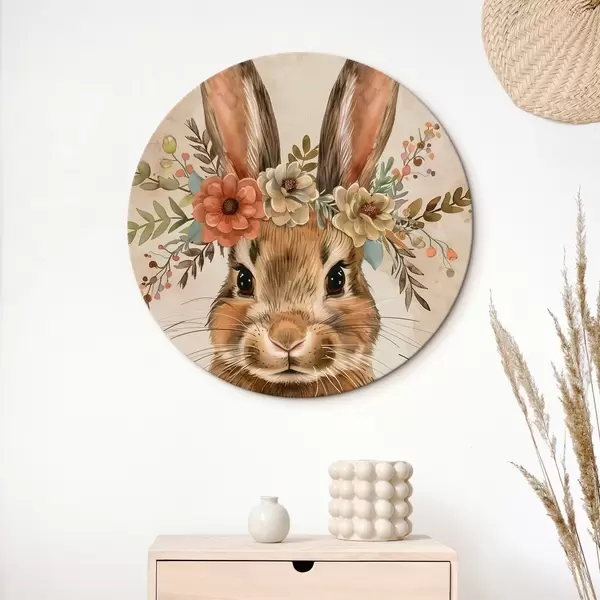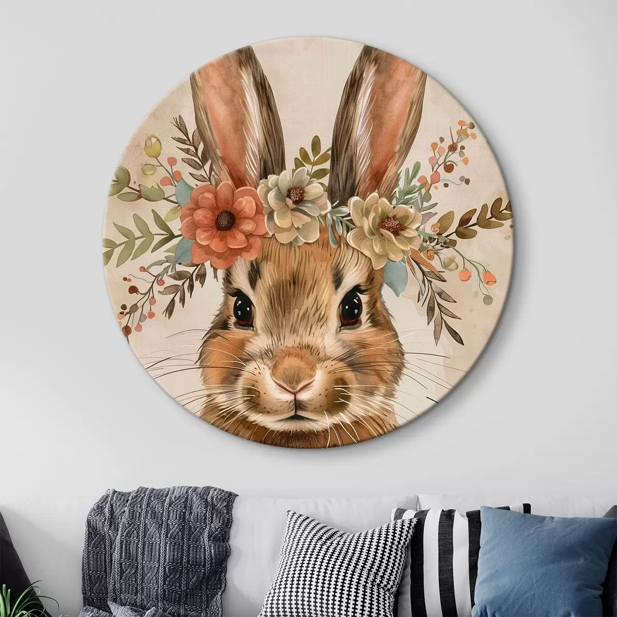 Quadri rotondi Lepre carina con fiori in stile acquerello r45332