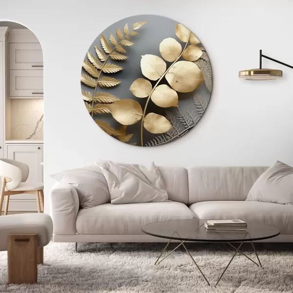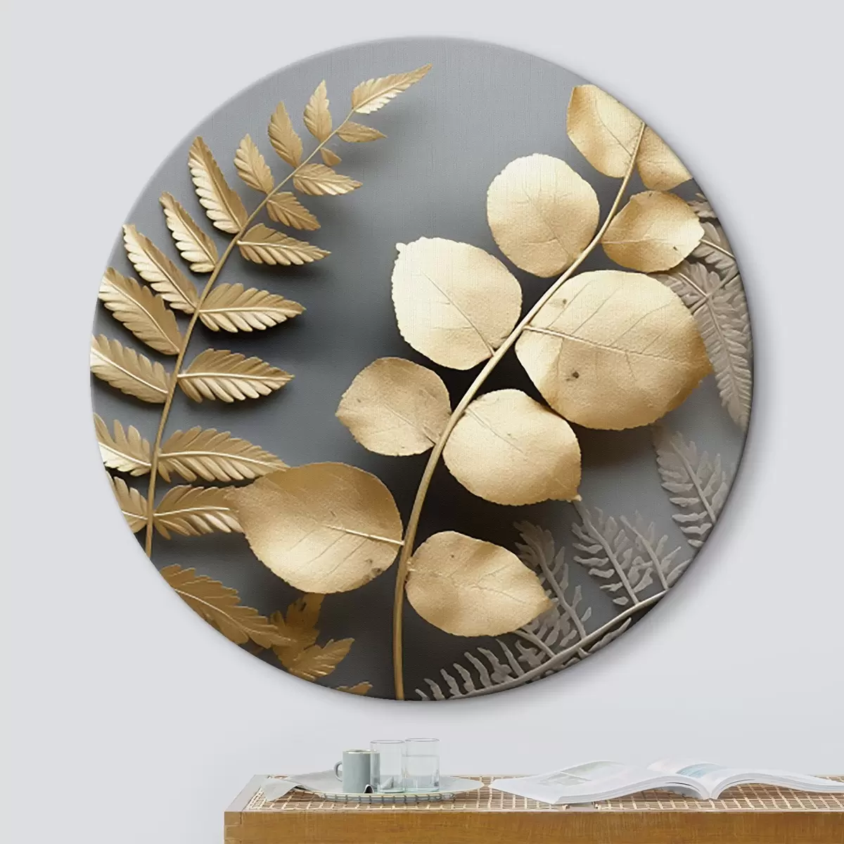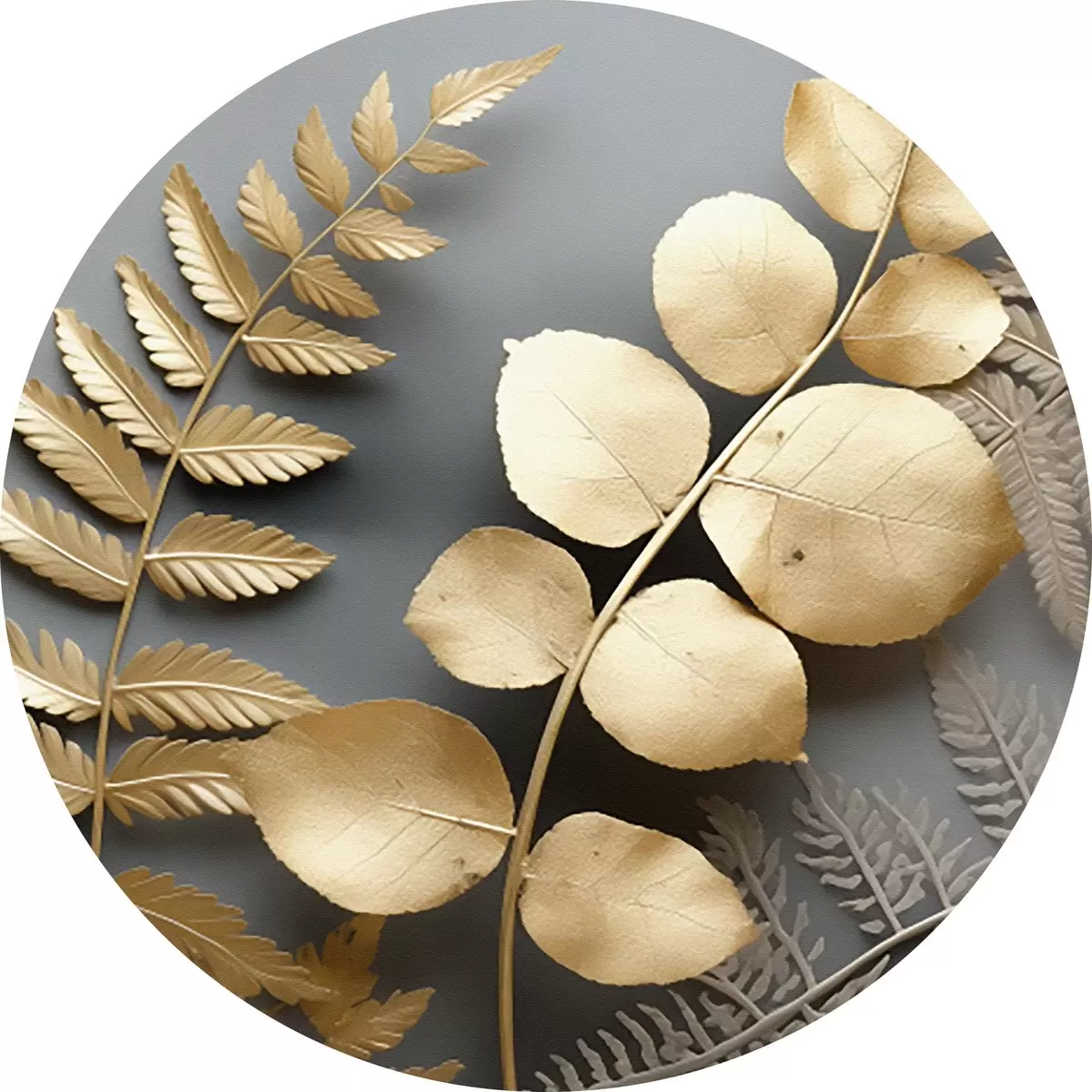 Quadri rotondi Rami di felce ed eucalipto su sfondo scuro r45334