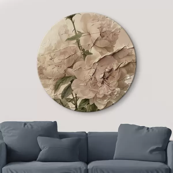 Quadri rotondi Un lussureggiante bouquet di peonie su uno sfondo chiaro r45337