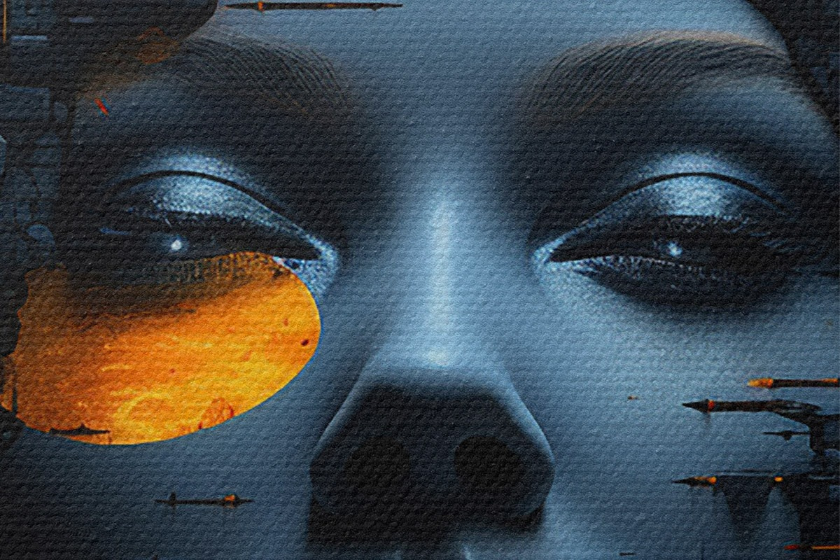 Immagine Persone, volto di ragazza su sfondo cittadino, astratto Nr r45341