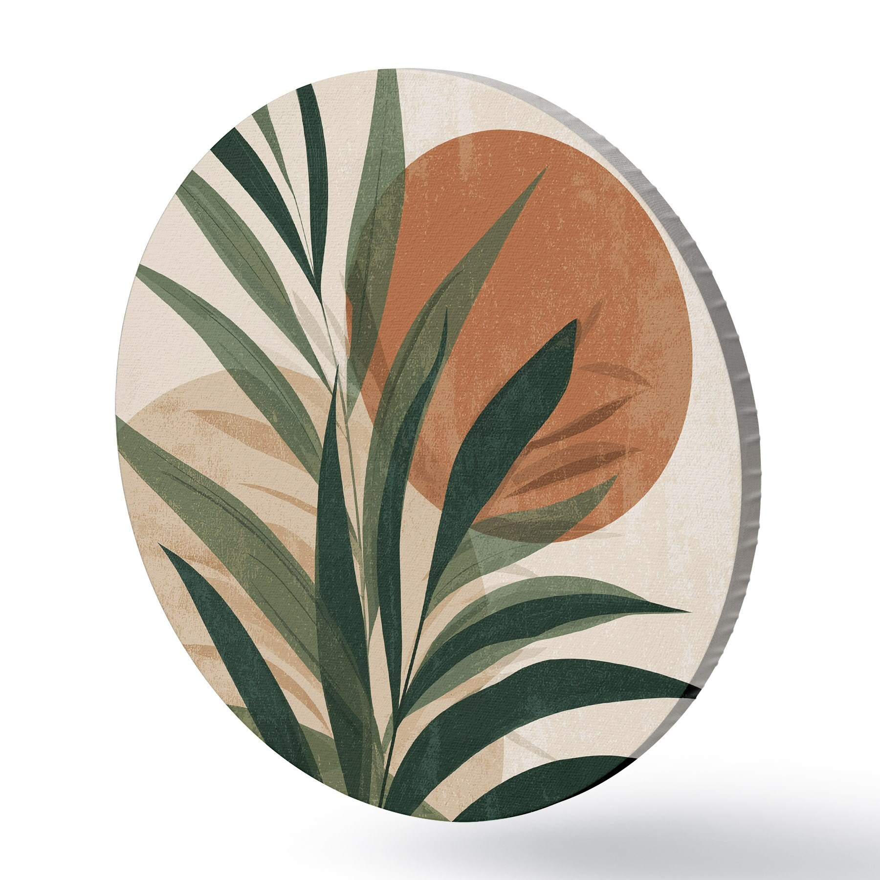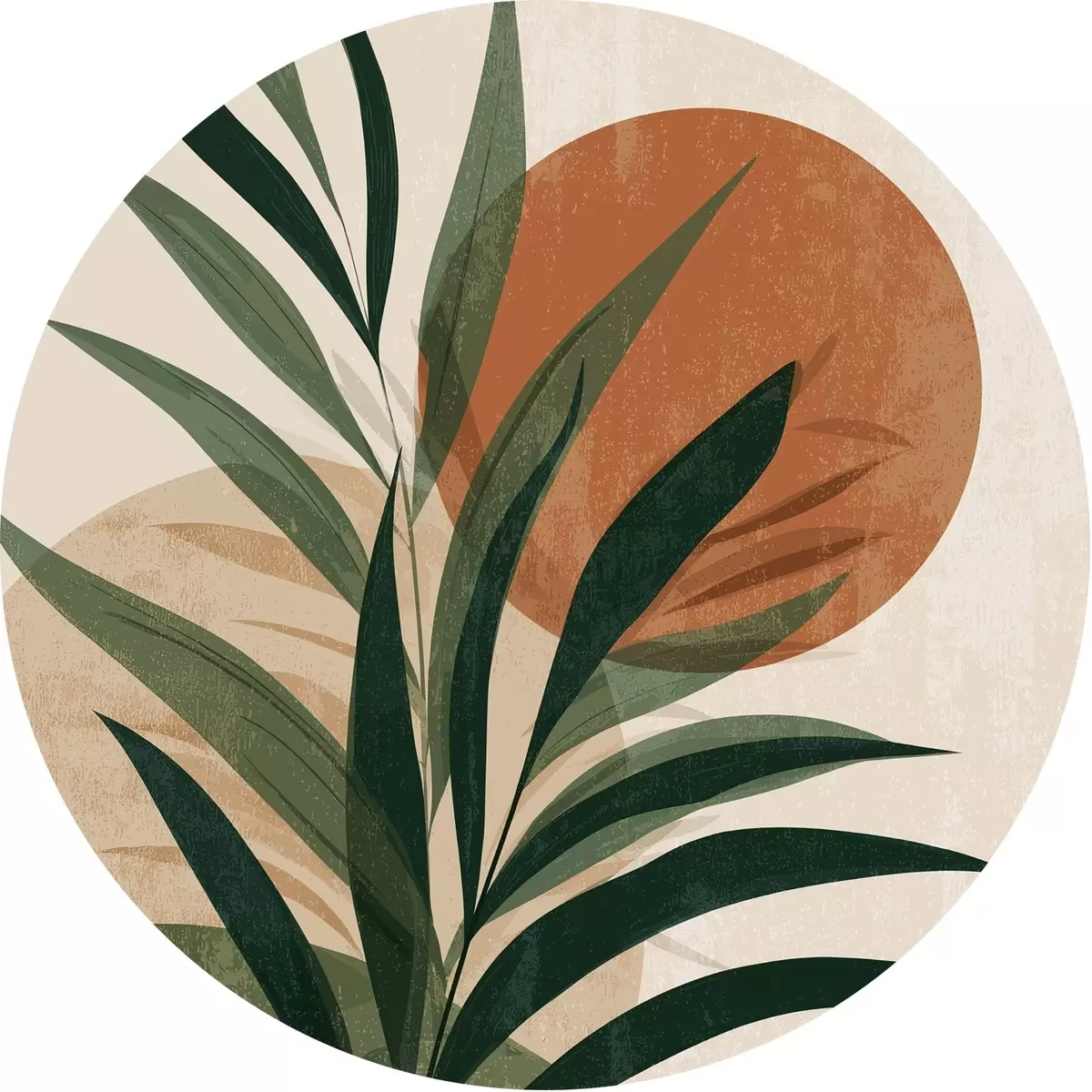Quadri rotondi Foglie verdi e tramonto r45394