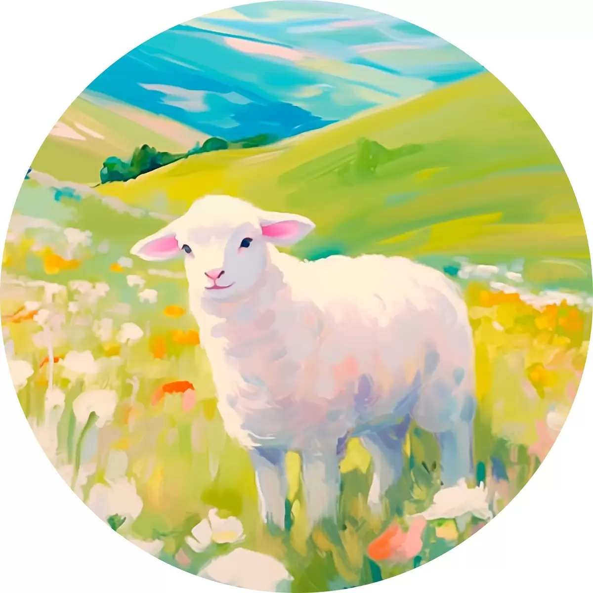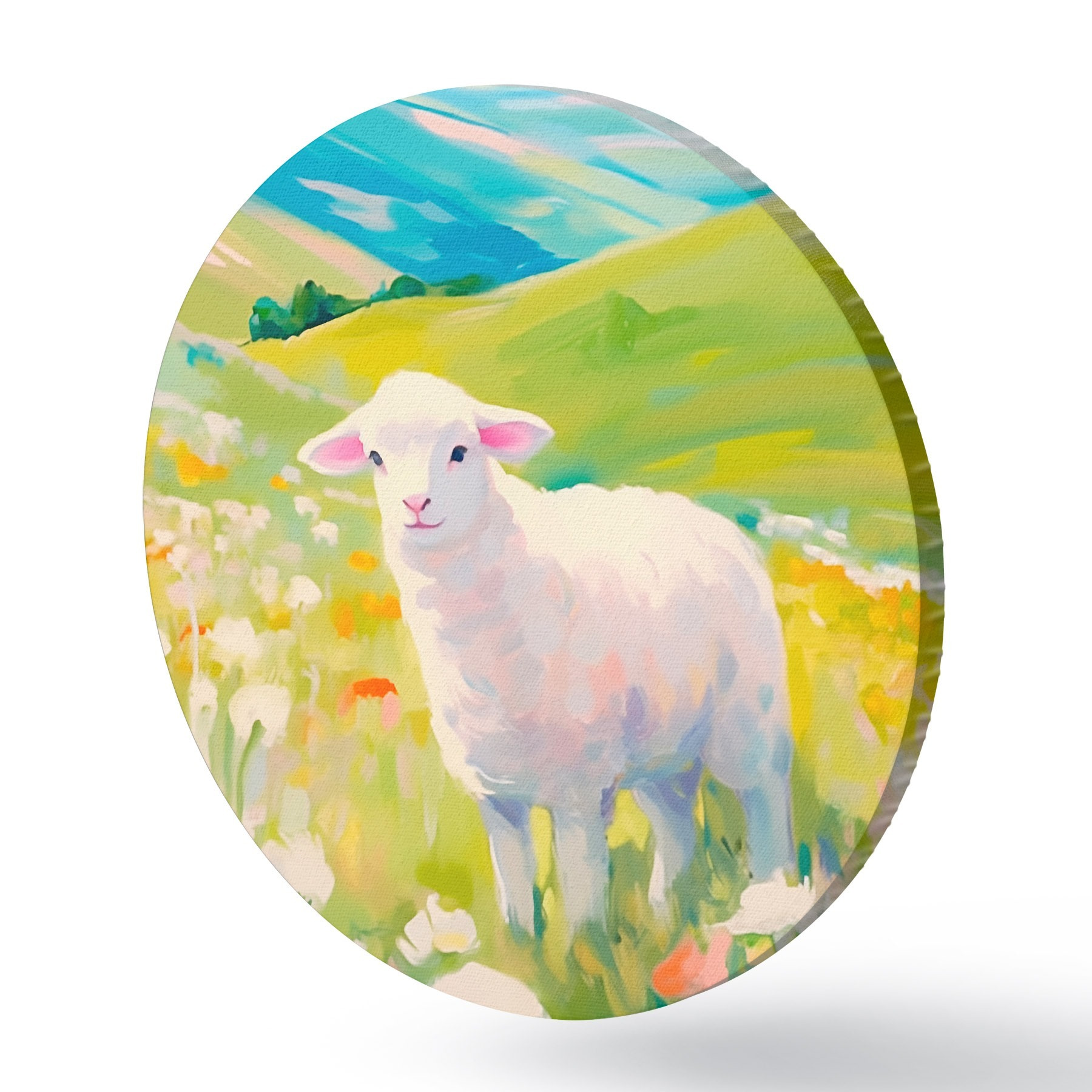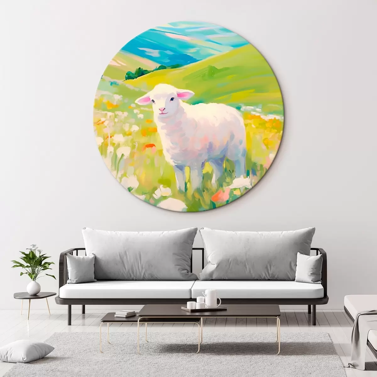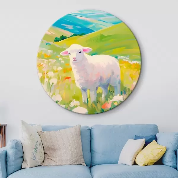Quadri rotondi Agnello in un campo di fiori r45426