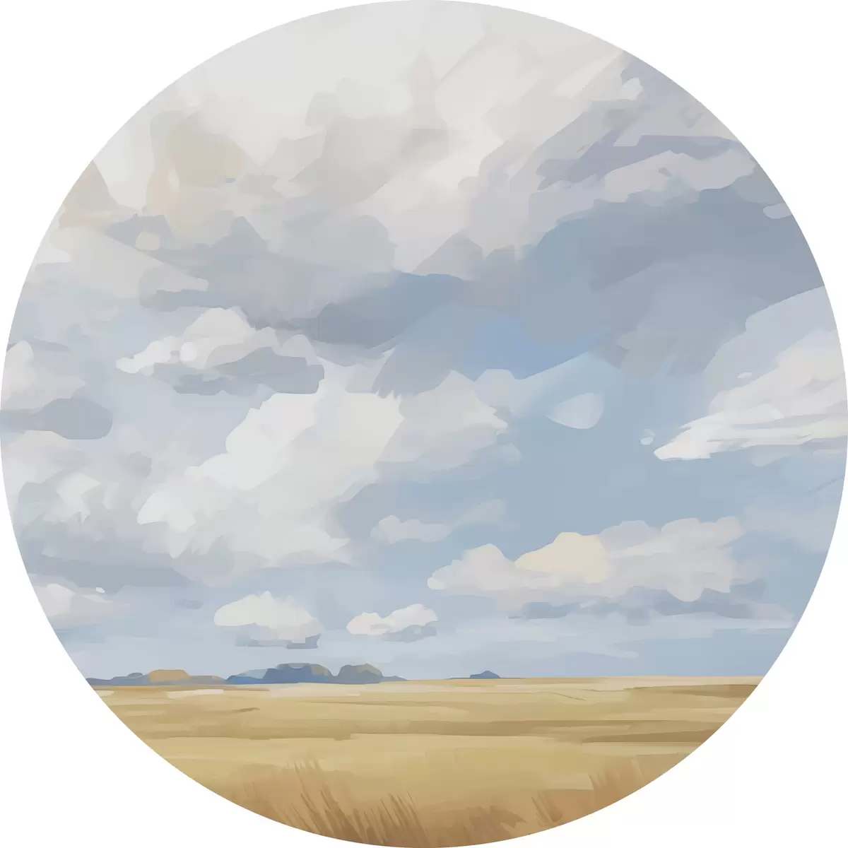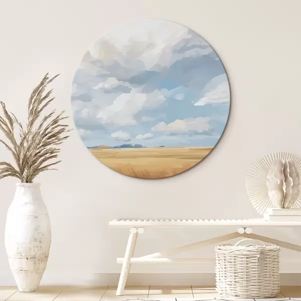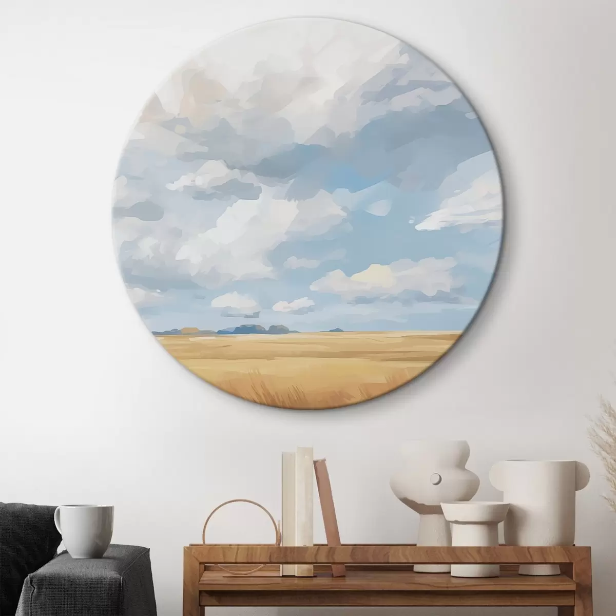 Quadri rotondi Campo di grano contro il cielo con enormi nuvole r45454