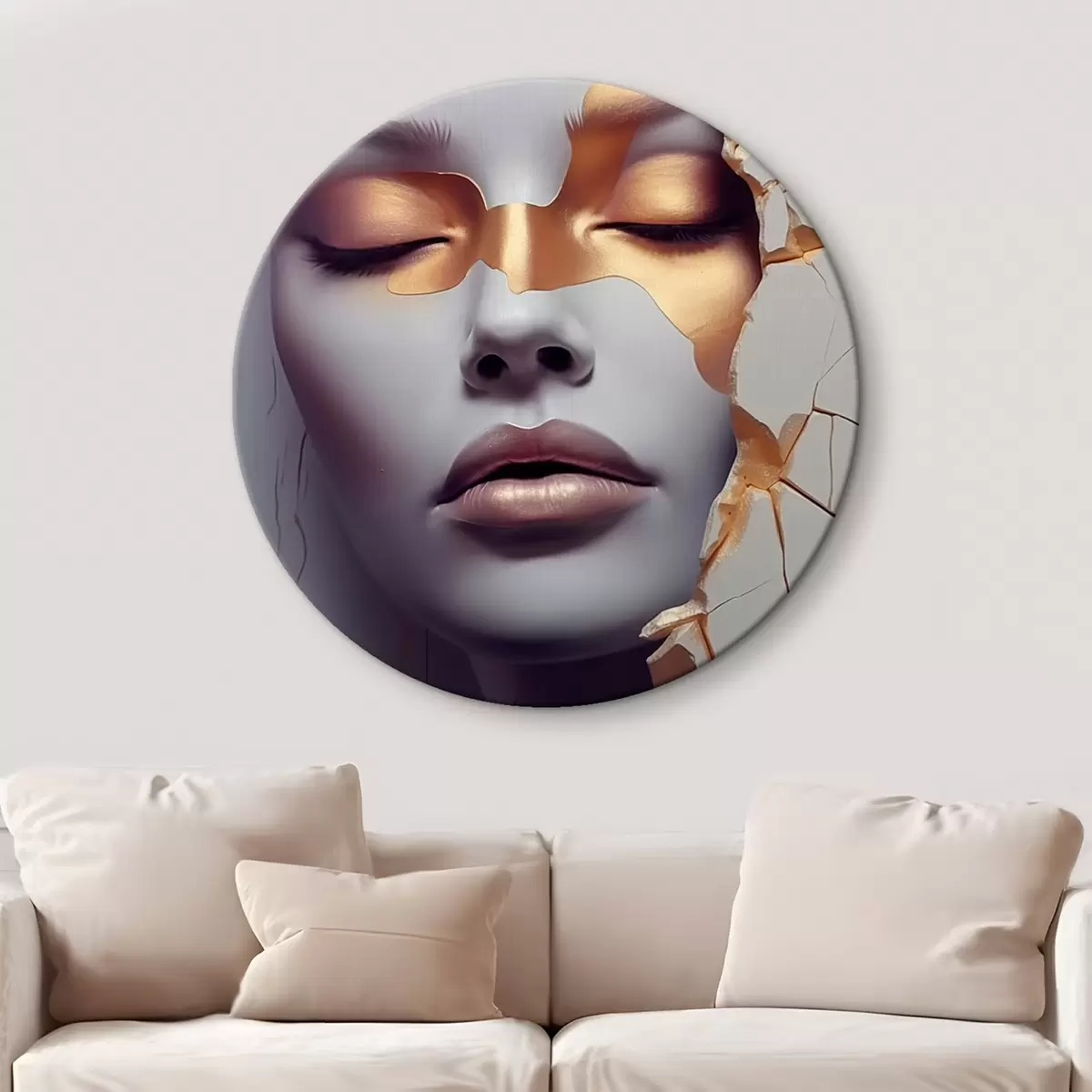 Quadri rotondi Il volto nelle crepe r45462