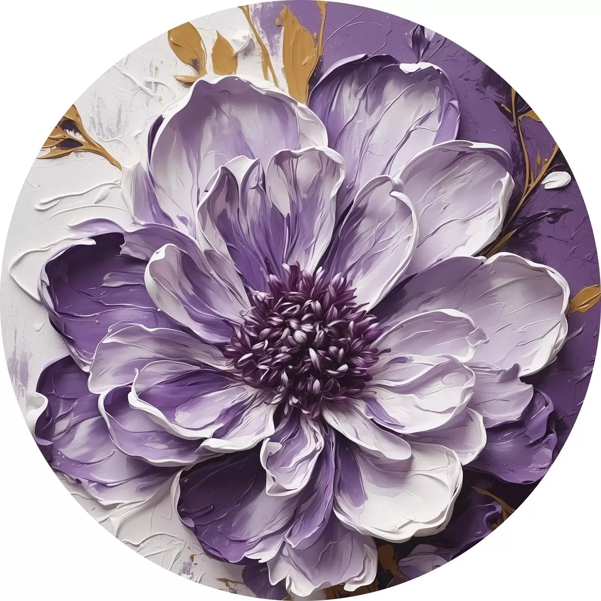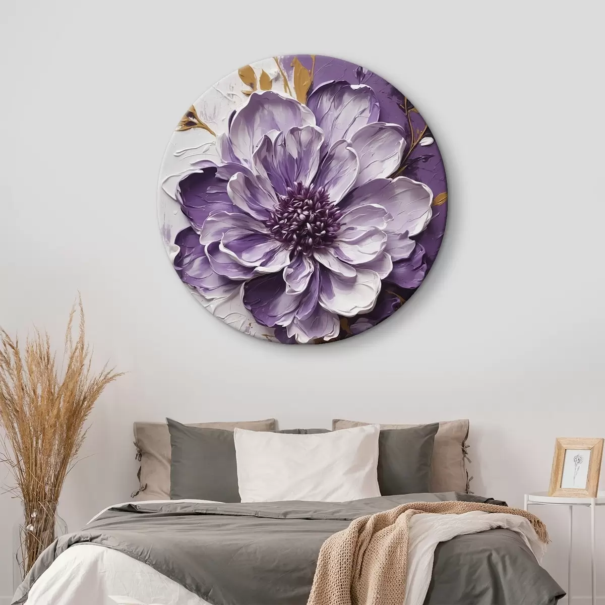 Quadri rotondi Fiore viola nello stile della pittura volumetrica r45492