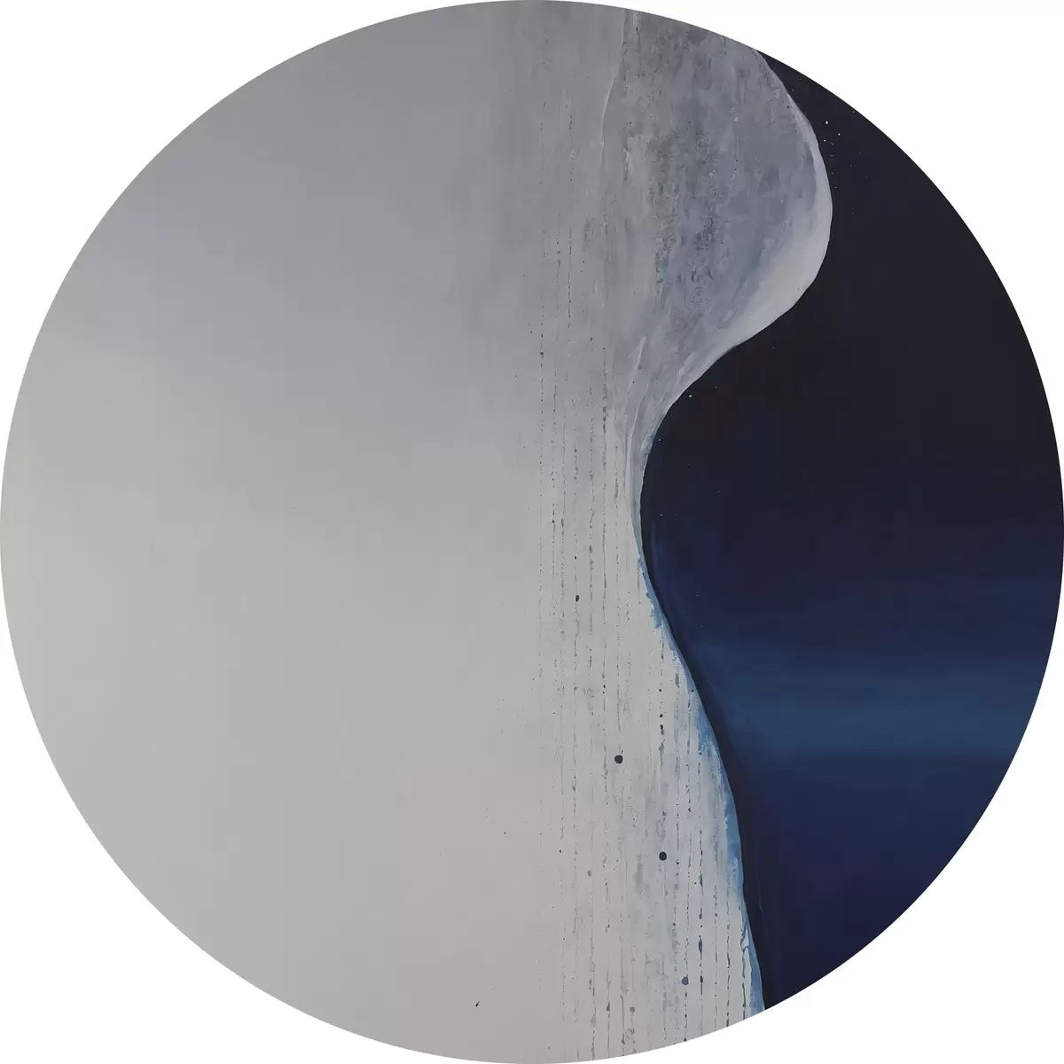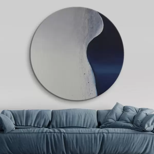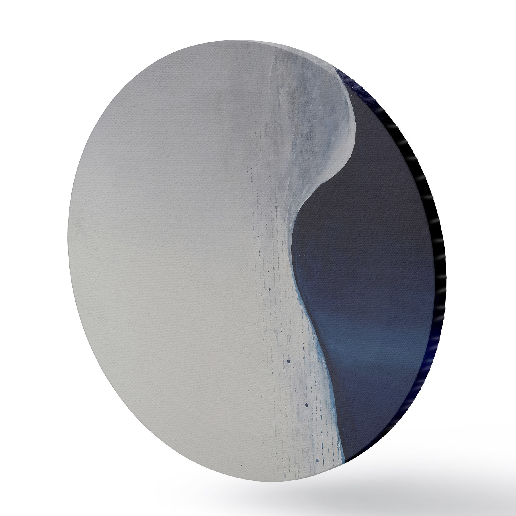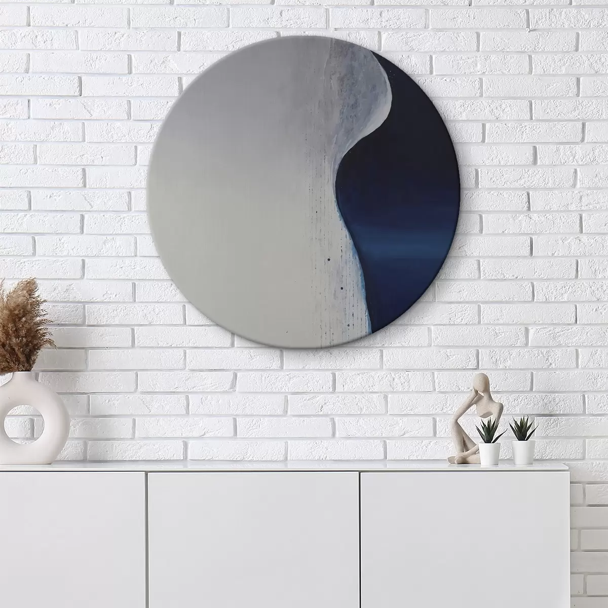 Quadri rotondi Pittura astratta nei toni del bianco, del blu e del blu scuro r45493