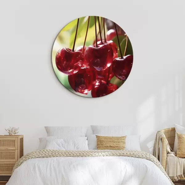 Quadri rotondi Ciliegie rosse e brillanti al sole r45498