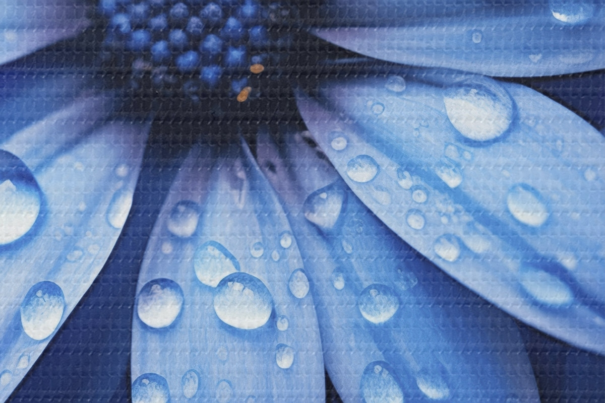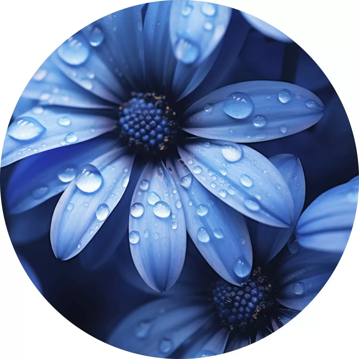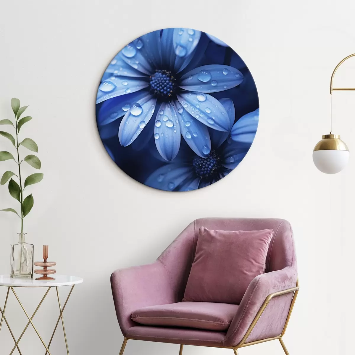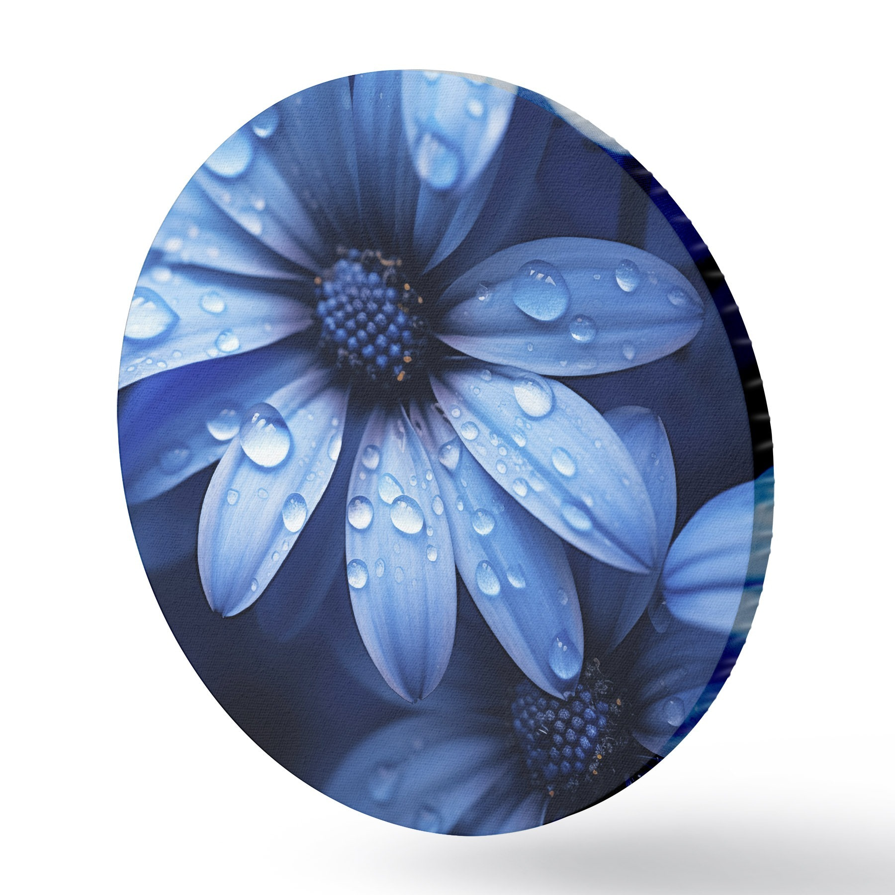 Quadri rotondi Fiore blu con gocce d'acqua sui petali r45499