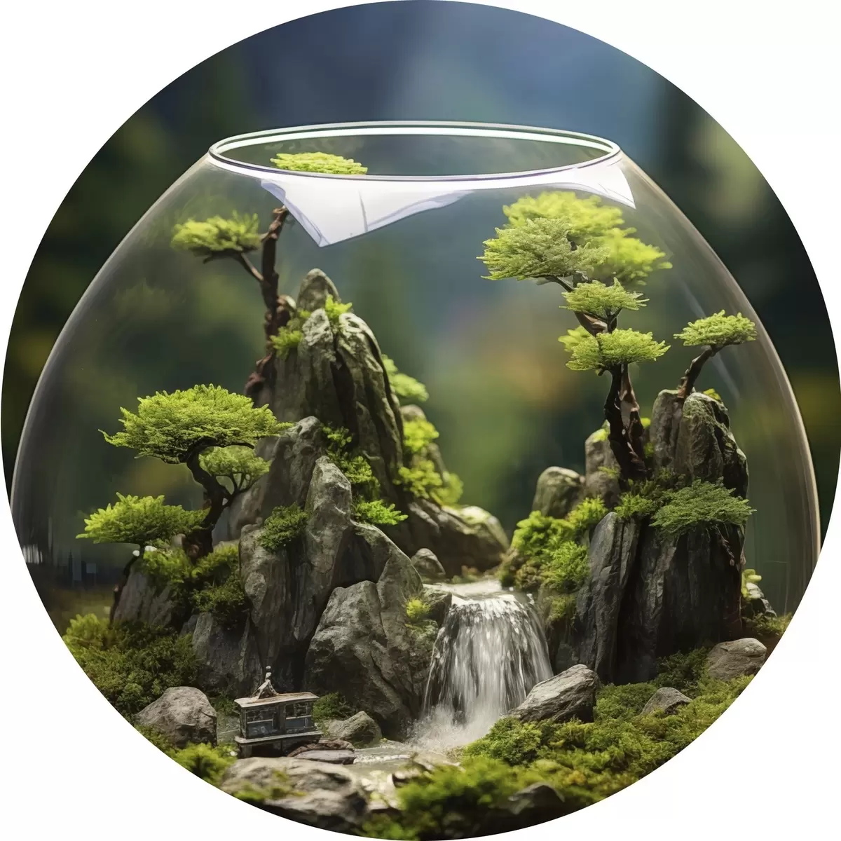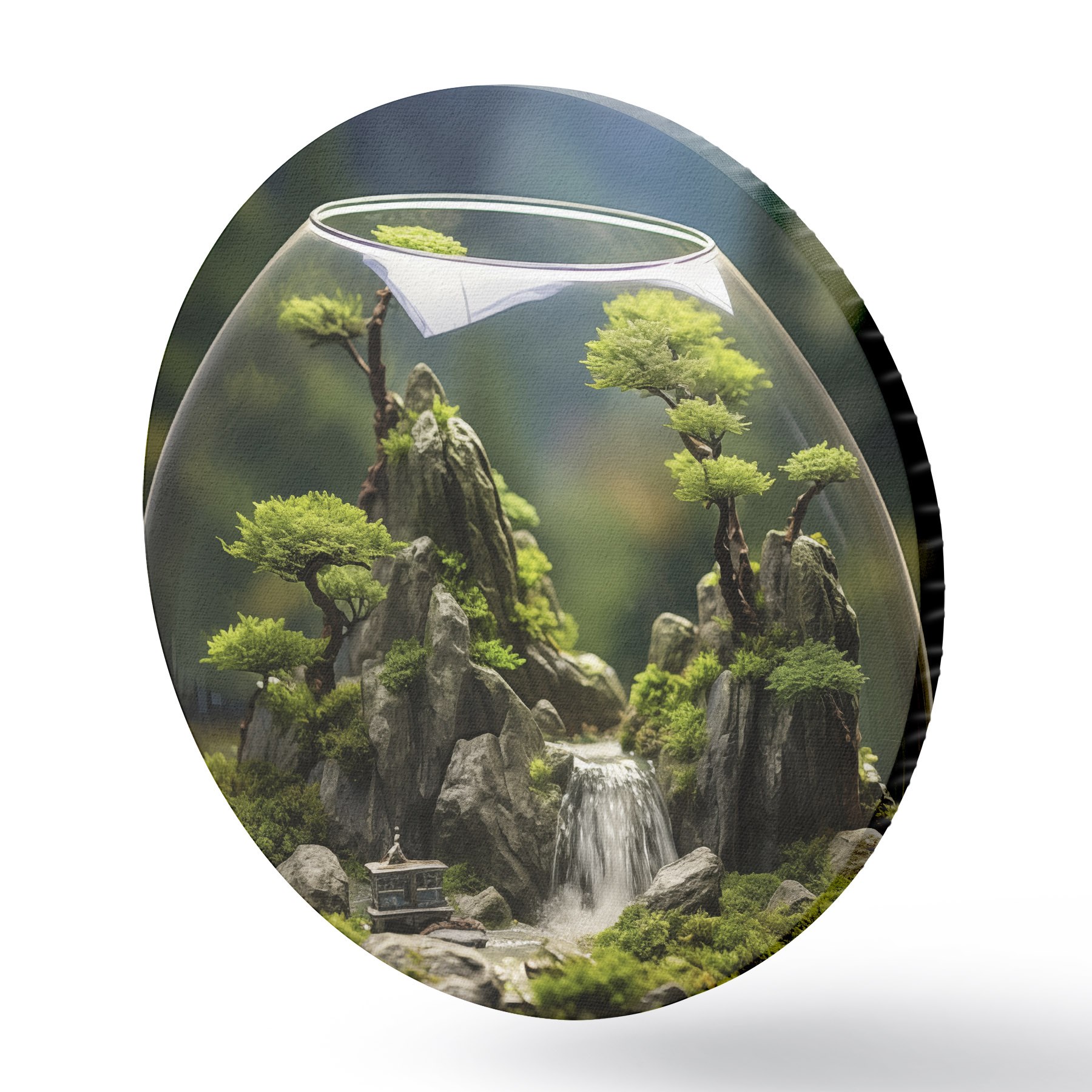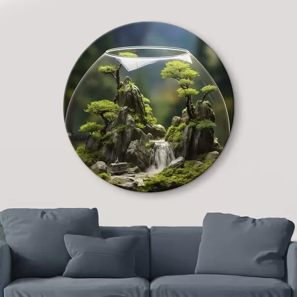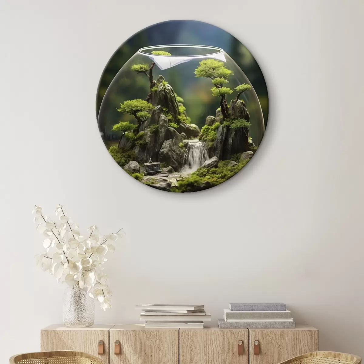 Quadri rotondi Paesaggio in miniatura con cascata in una sfera di vetro r45502