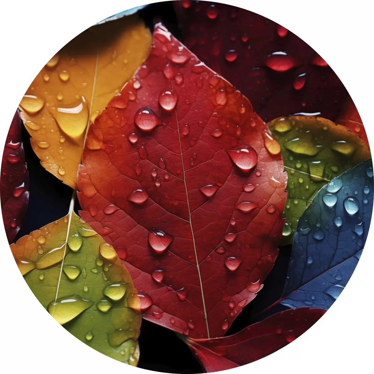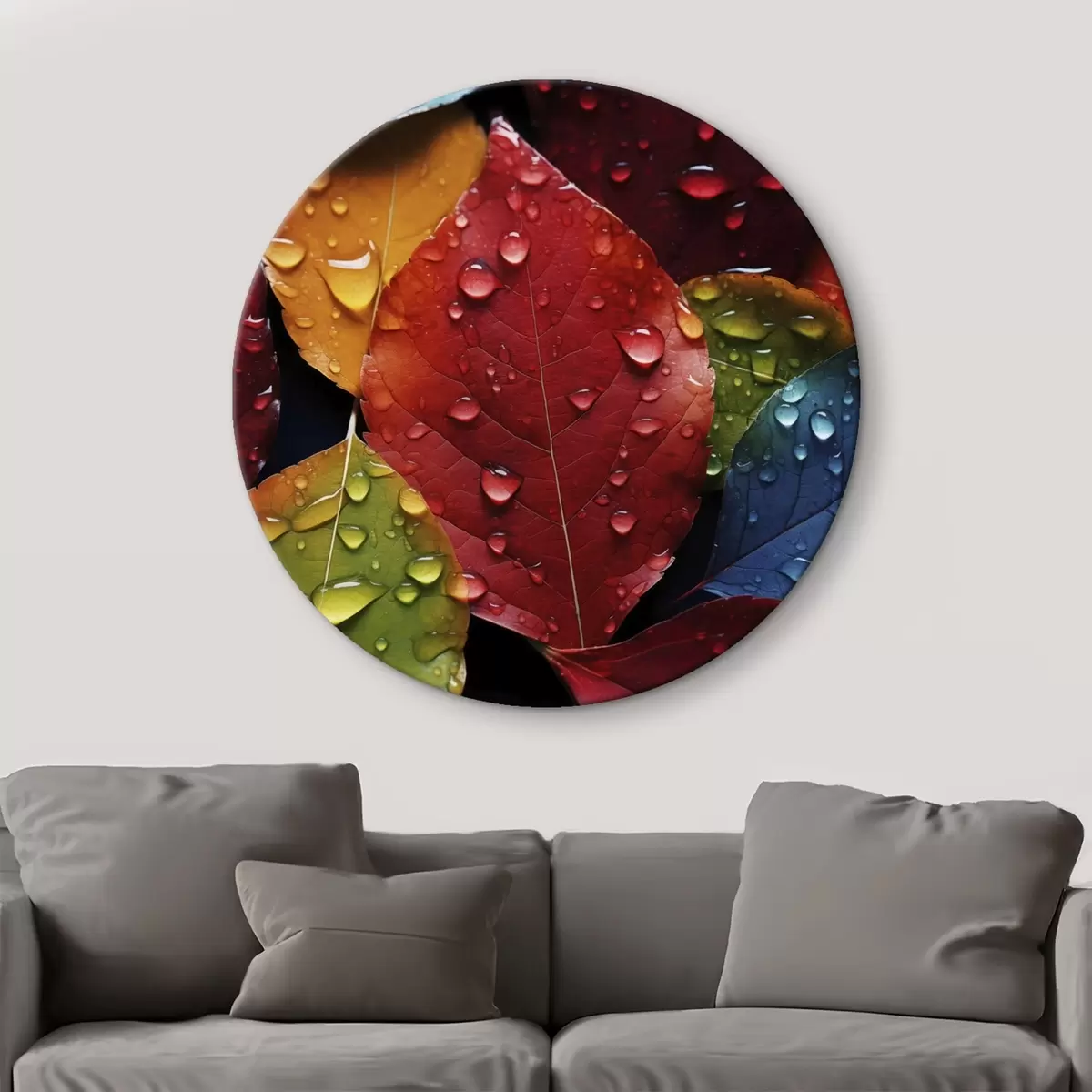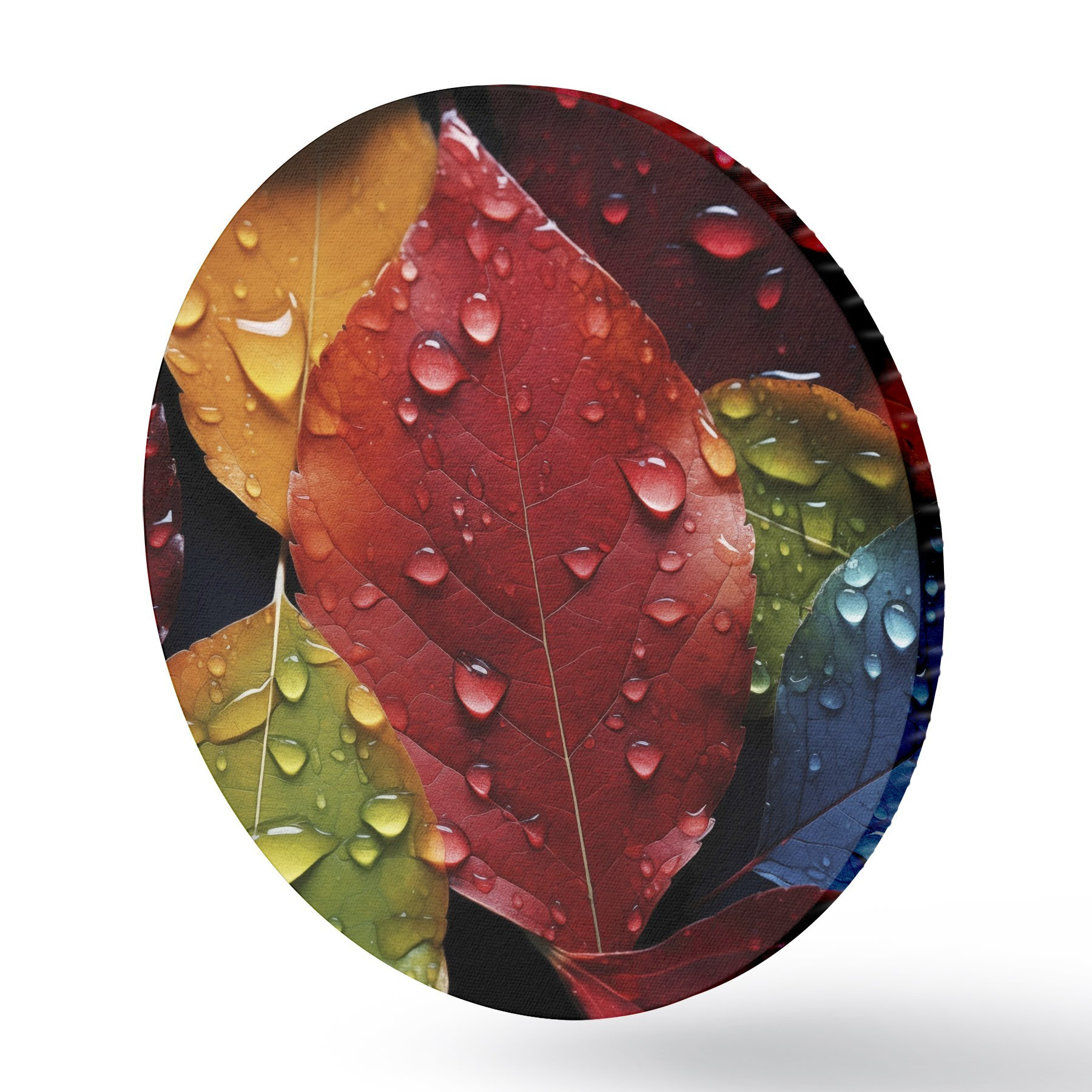 Quadri rotondi Foglie colorate con gocce d'acqua r45516