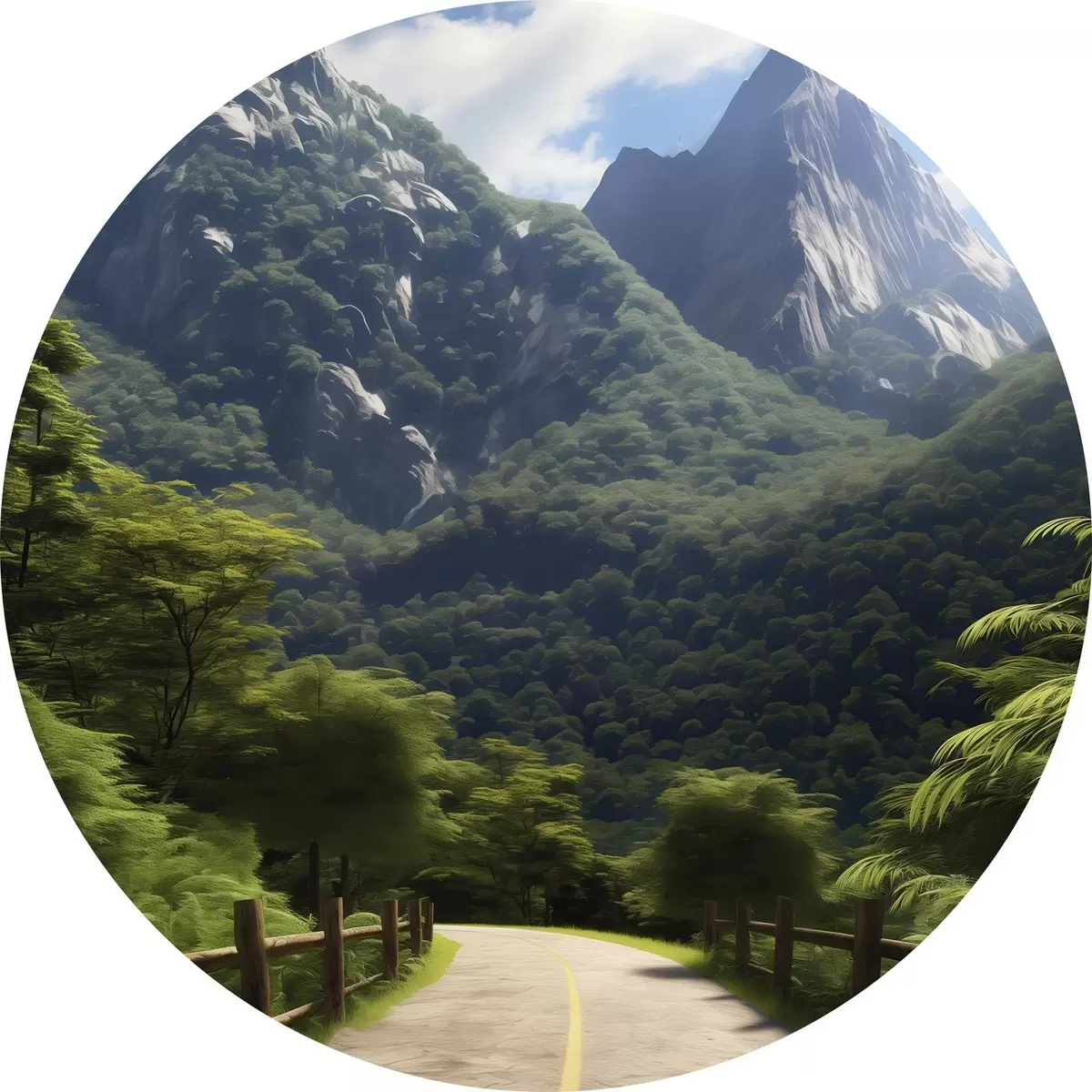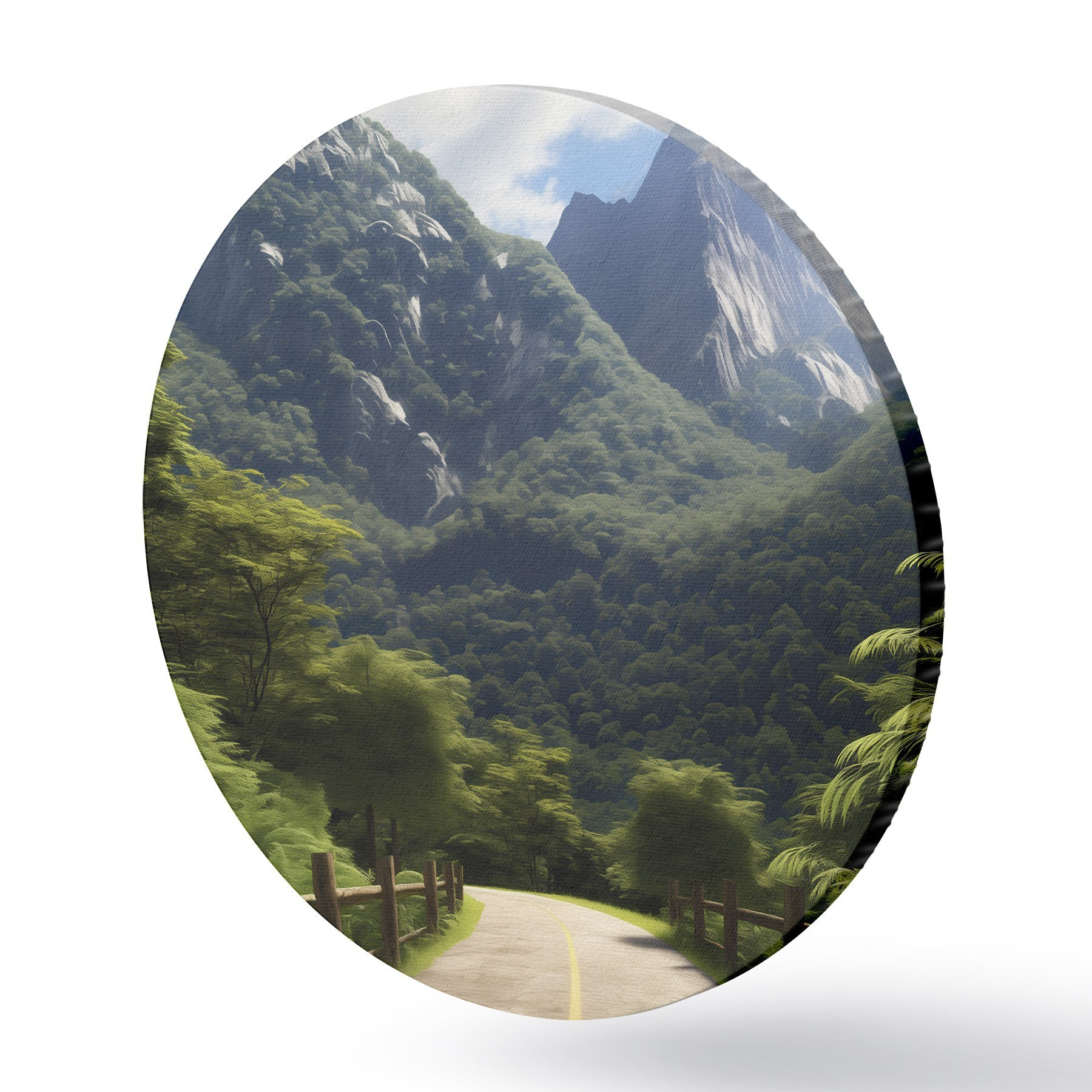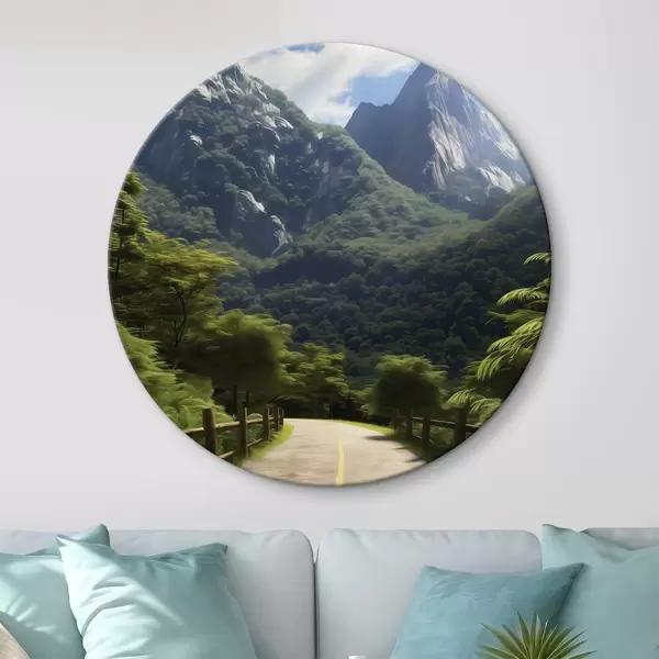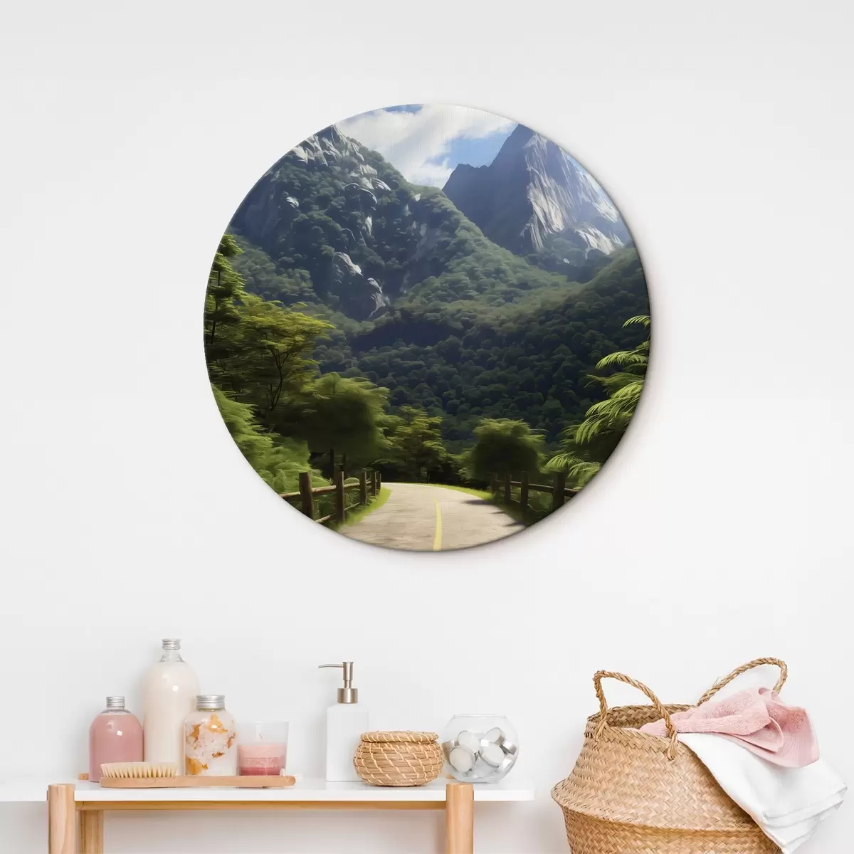 Quadri rotondi Strada di montagna tra alberi verdi r45525