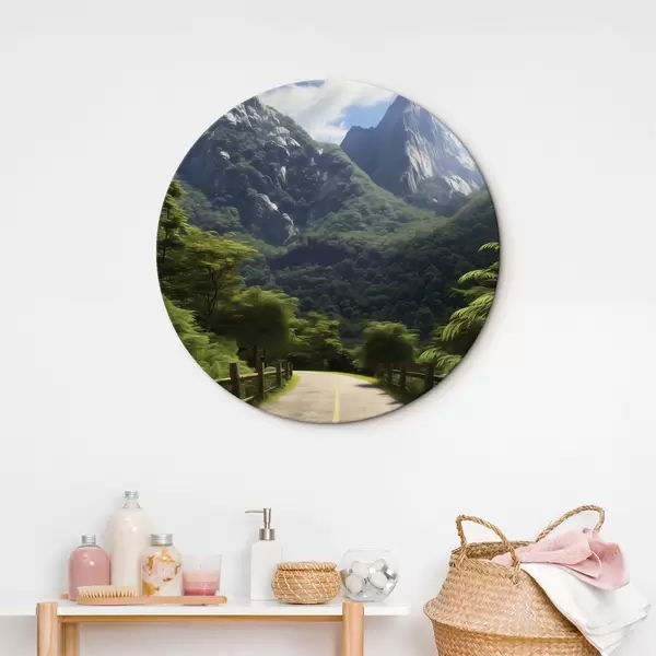 Quadri rotondi Strada di montagna tra alberi verdi r45525