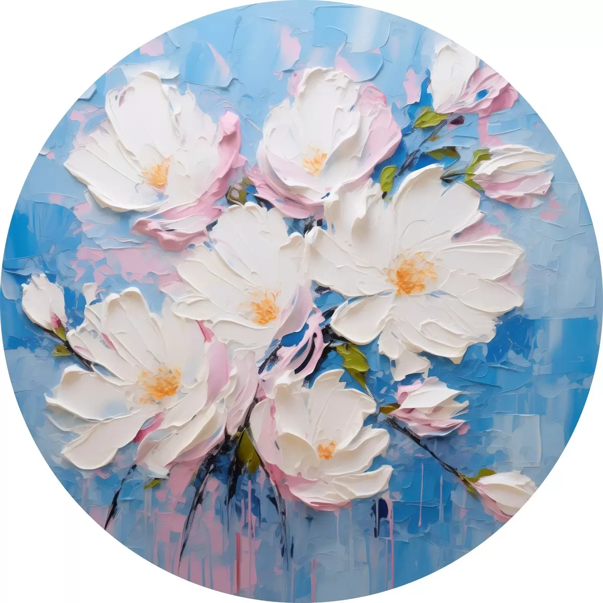 Quadri rotondi Fiori voluminosi: composizione nello stile della pittura a olio r45537