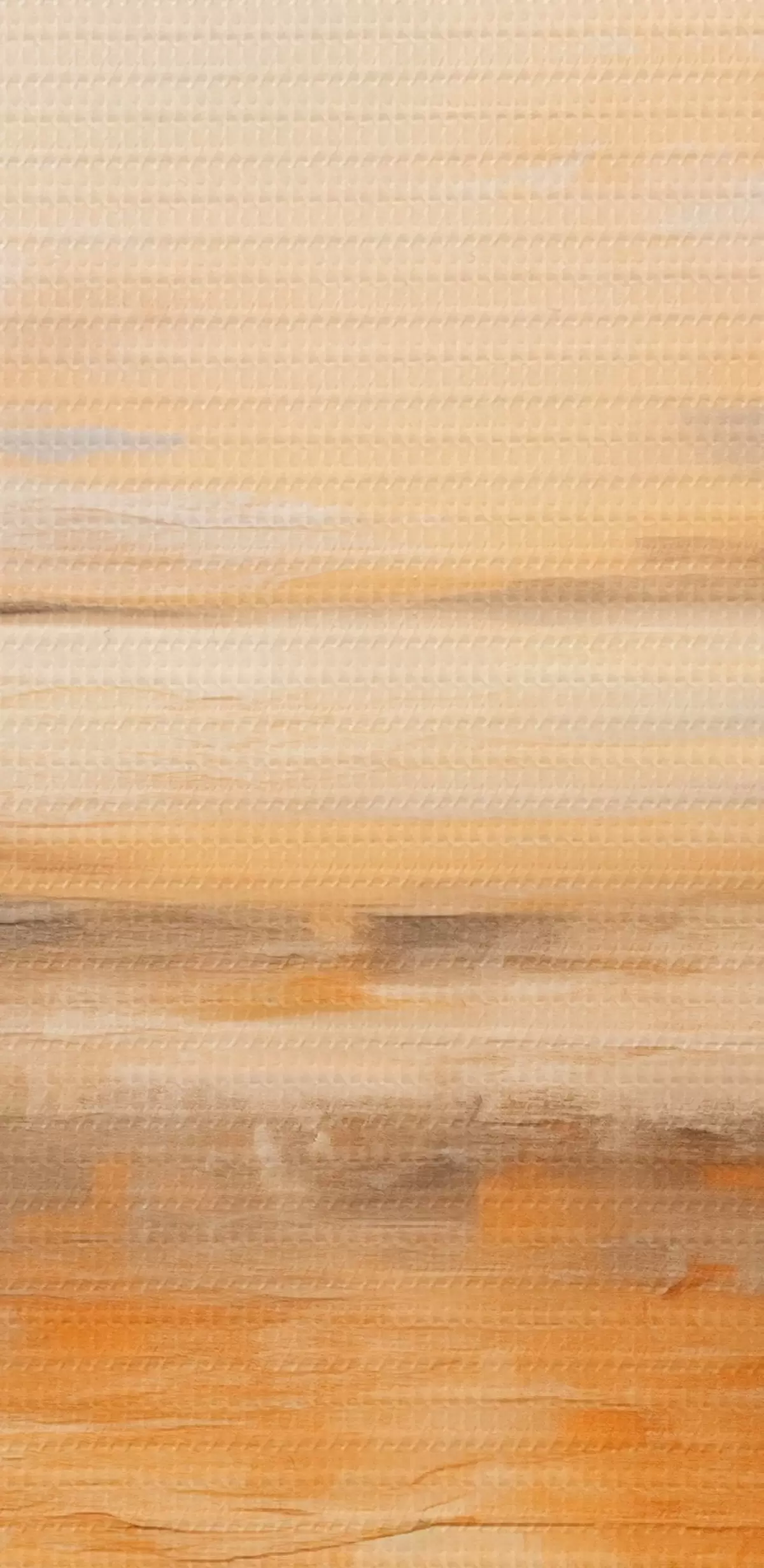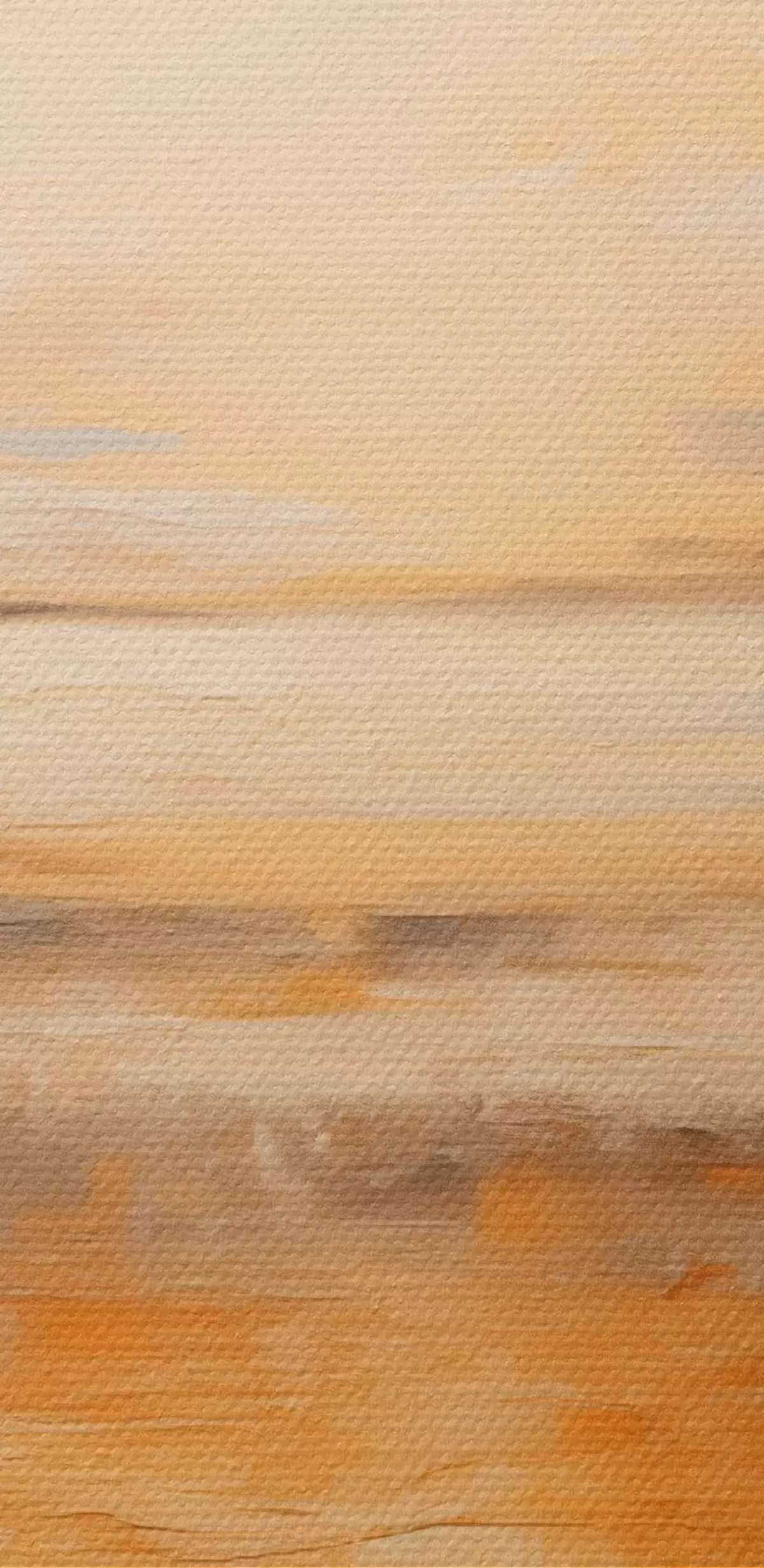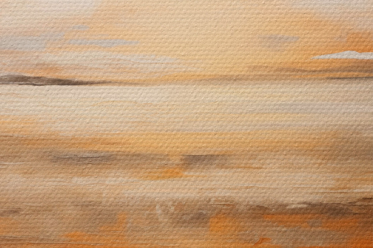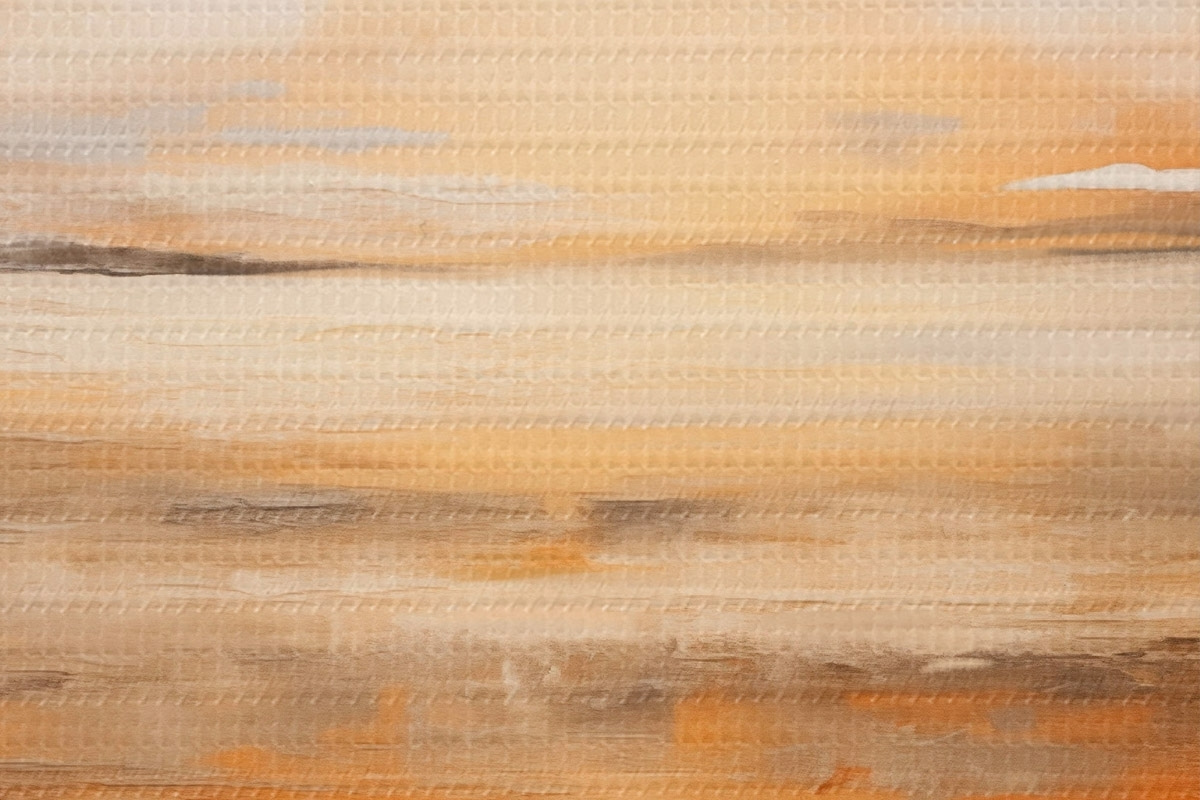 Immagine Un dipinto astratto di un paesaggio di spiaggia con un oceano calmo, sabbia arancione e un cielo nuvoloso con sole Nr r45567