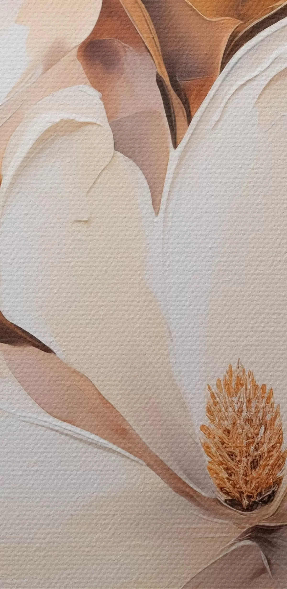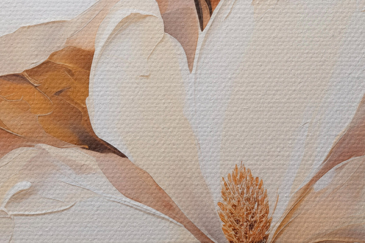 Immagine Fiori di magnolia bianchi su uno sfondo morbido e sfocato di tonalità beige e marrone, stile pittura Nr r45572