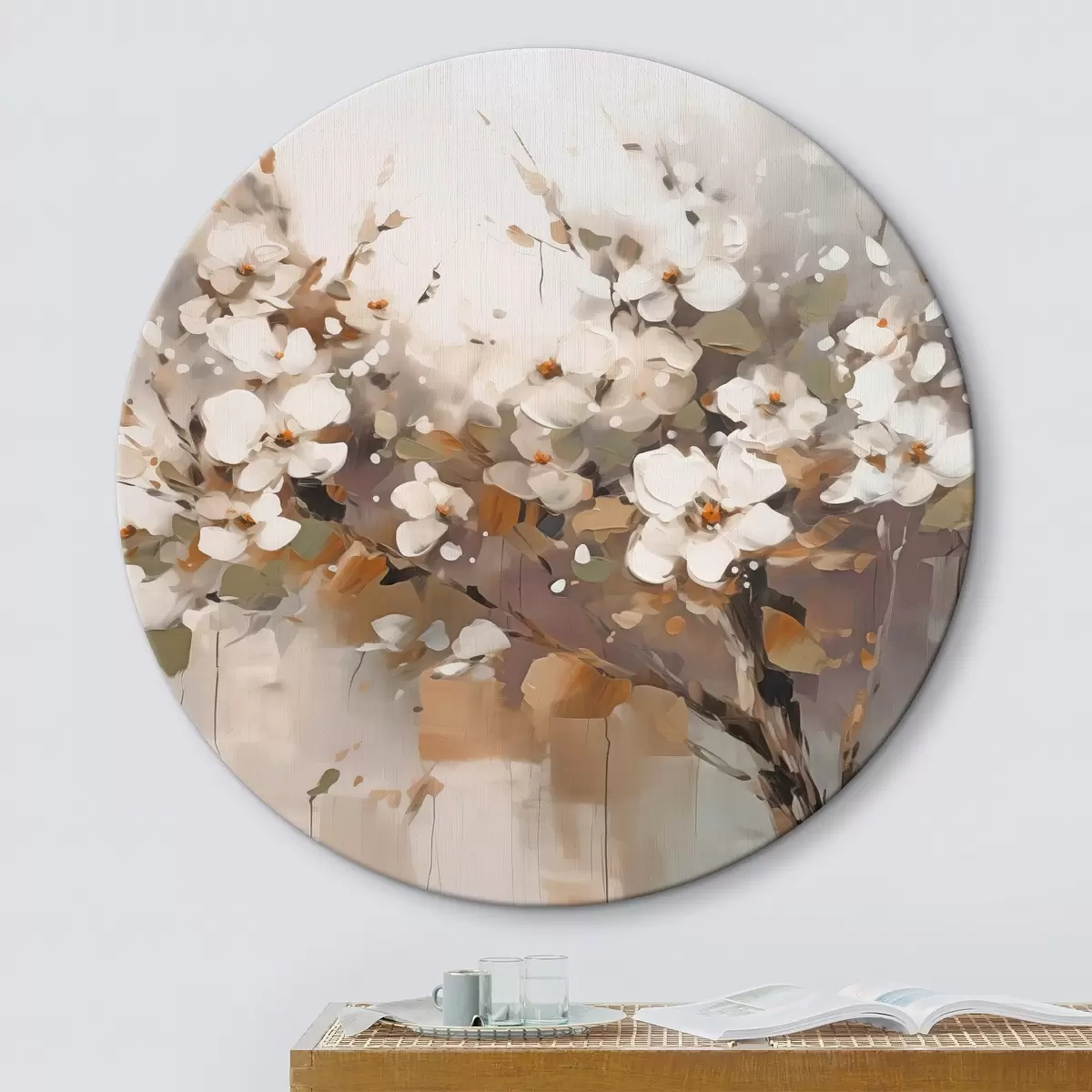 Quadri rotondi Ramo astratto con fiori r45579